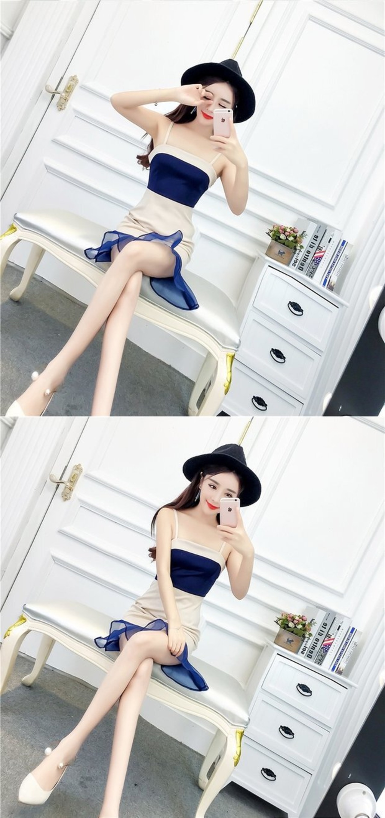 スリングカラーの2020年夏の新しい女性のバージョンは、薄くてセクシーなフリルバッグヒップフィッシュテールドレスの潮です サマー 夏物 Sexy韩衣坊7897254