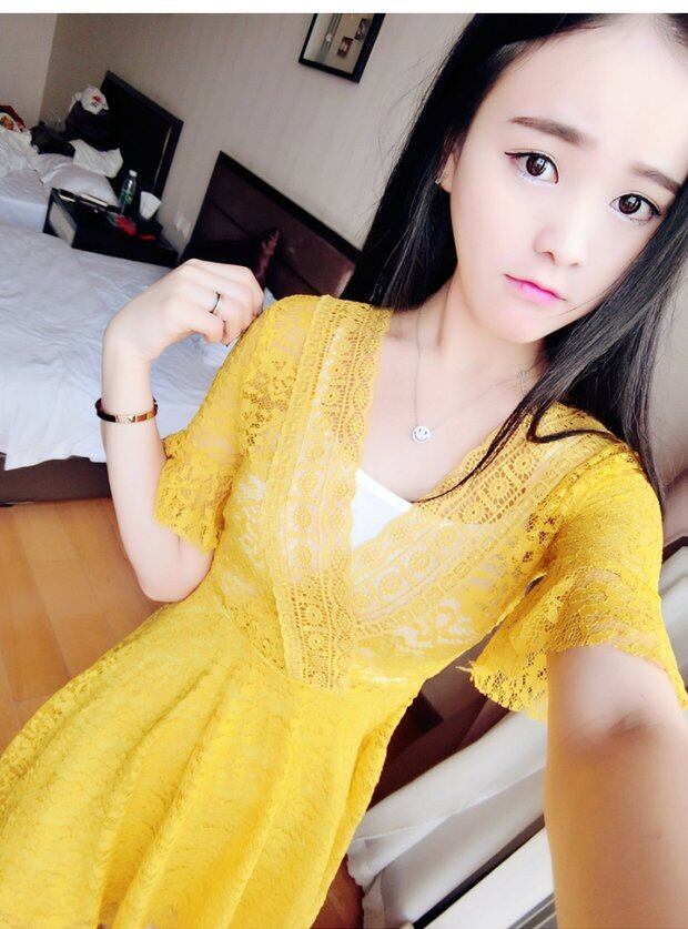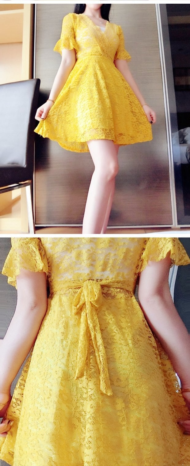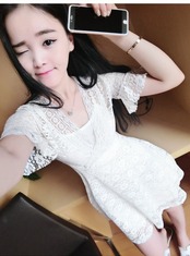 2020夏のファッションナイトクラブの女性のセクシーなローカットVネックのウエストは薄い半袖のレースのAラインドレスでした サマー 夏物 Sexy韩衣坊2437412