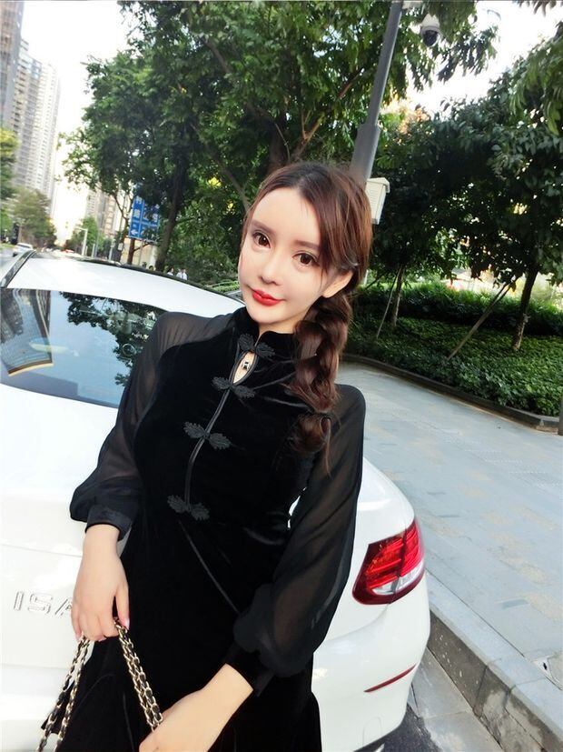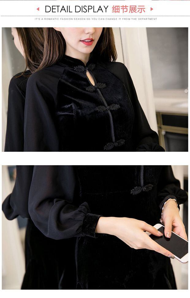 2020秋と冬の新しい気質セクシーな改善されたチャイナバックルシフォンランタン長袖スリムフリルドレス ロング オータム 秋物 ウィンター 冬物 Sexy韩衣坊3718507