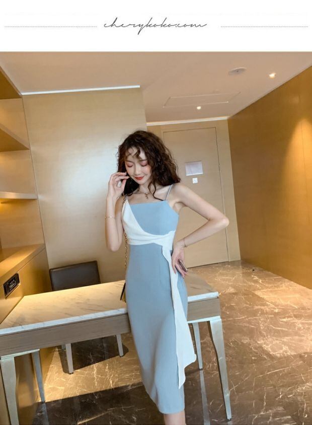 フェミニンなドレス2020夏の新しいウエスト痩身フレンチスモールドレスサスペンダースカートロングスカートスーパー妖精 サマー 夏物 Sexy韩衣坊9213939