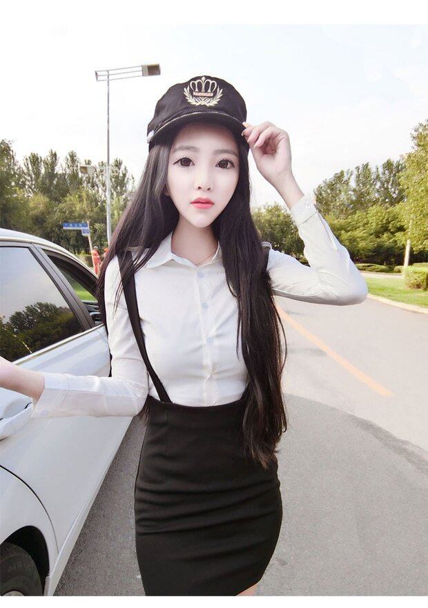 色:白いワンピースと黒いスカート【ツーピーススーツ】