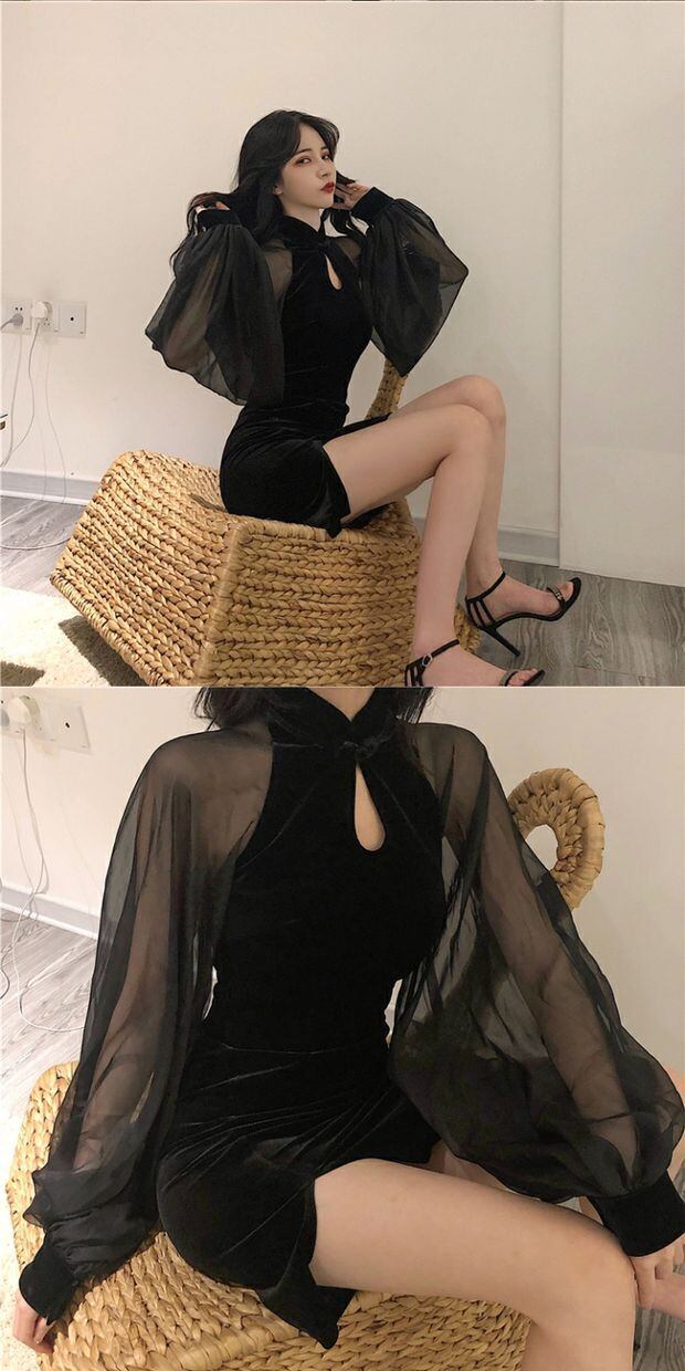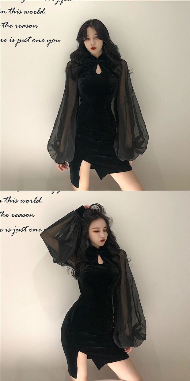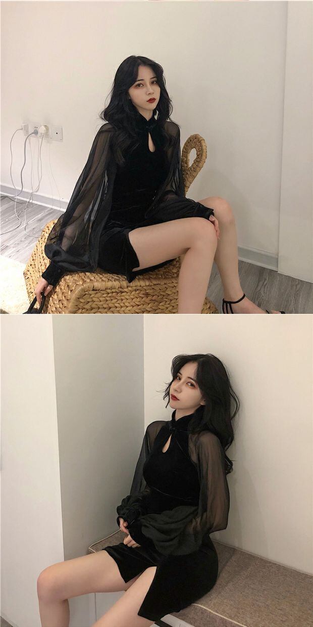 チャイナダーク部女性の暗い喪部のバージョンの疲労感、禁欲的な寒さ、セクシーな改善されたドレスのバージョン Sexy韩衣坊6028509