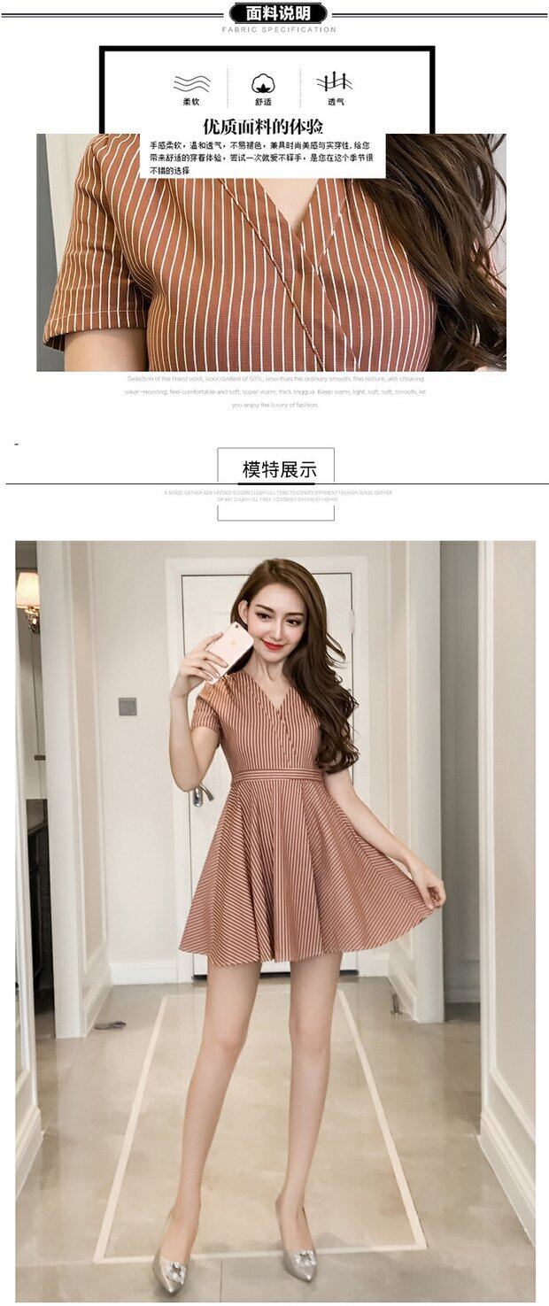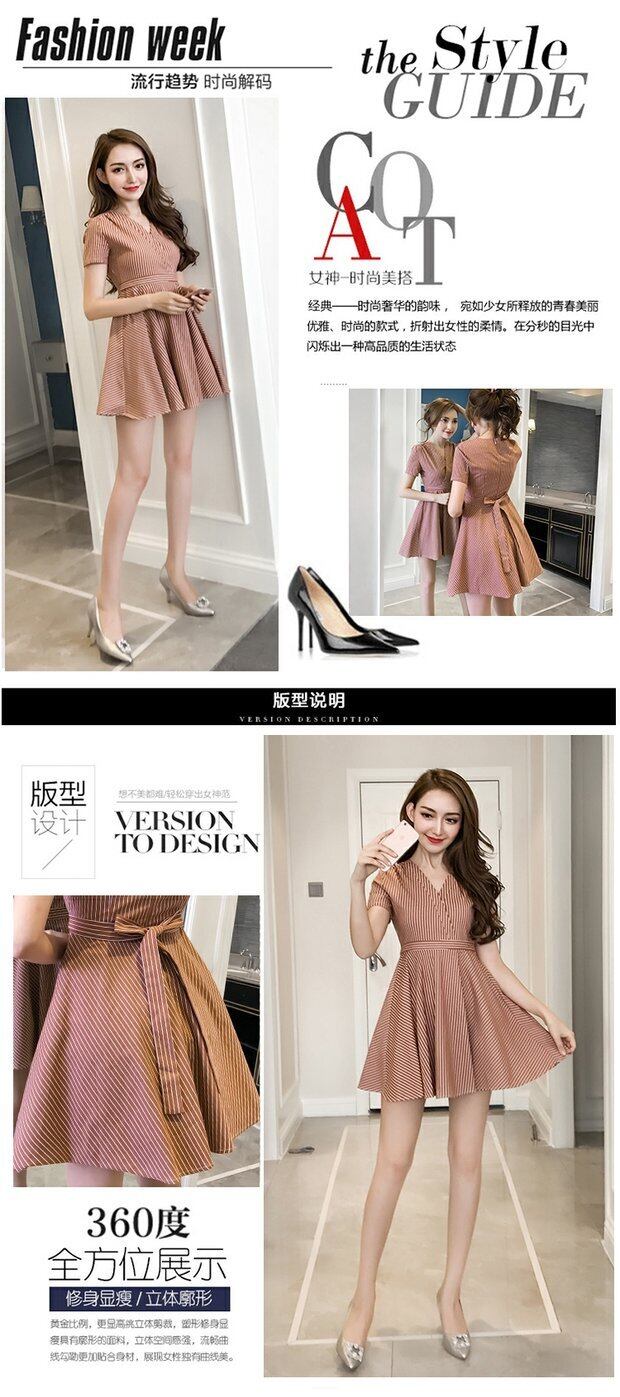 2020夏のファッションの女性の気質Vネックセクシーなウエストネクタイ単語スリムスリムストライプ半袖ドレス サマー 夏物 Sexy韩衣坊1324588