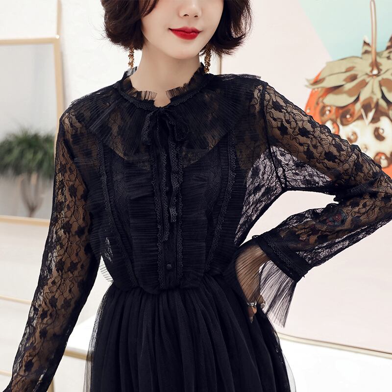 ネットレッドヘビーインダストリーメッシュヤーンレースドレス2019春夏レディースバージョンレディースエレガントエレガンスヘプバーンドレス スプリング 春物 サマー 夏物 DESIRE_DESIGN1062055