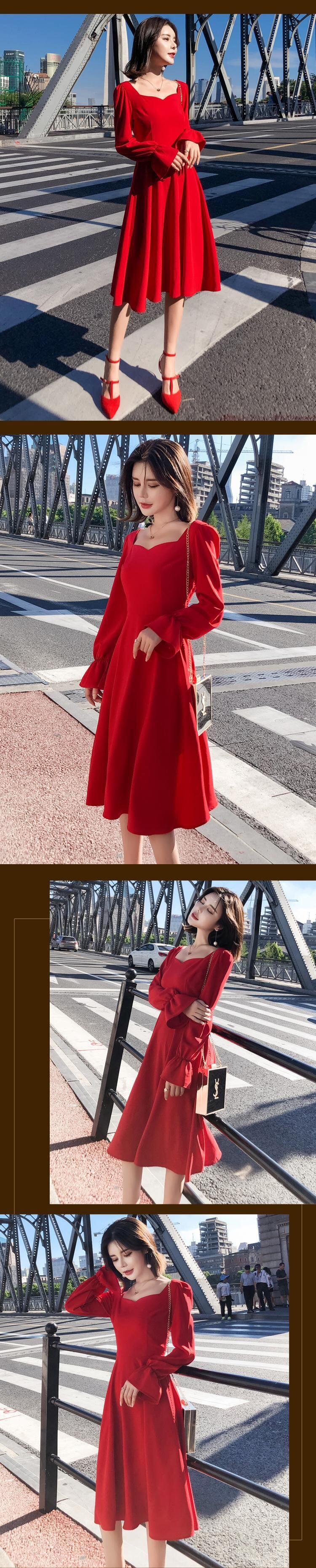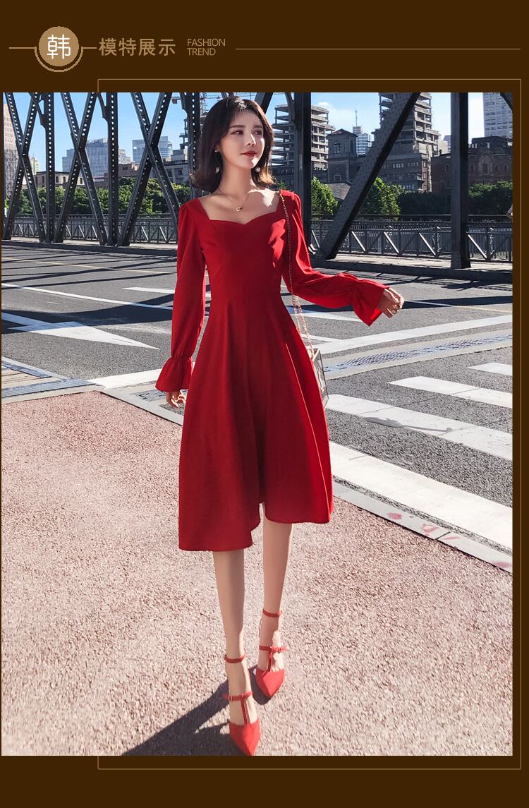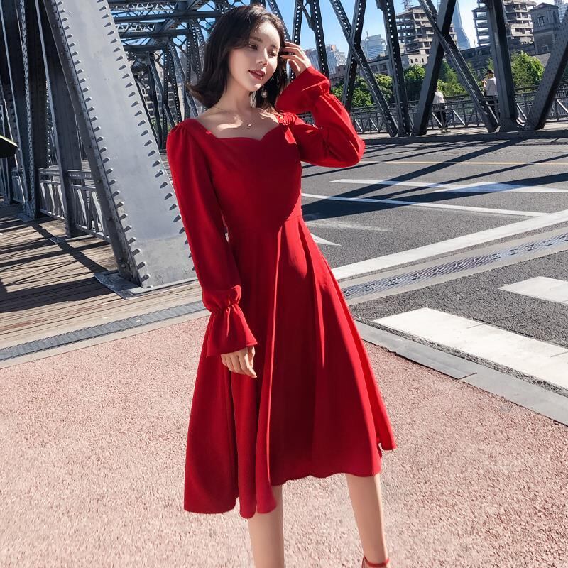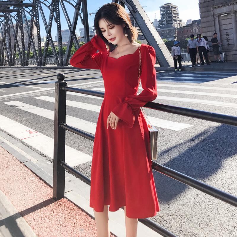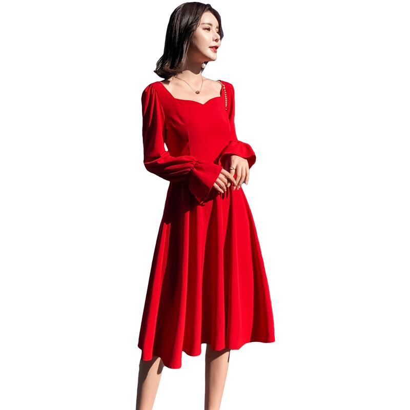 2019秋と冬の新しい女性の甘い気質エレガントなレトロスリム痩身ドレス赤年次総会ドレス レッド 大人ガーリー スウィート キュート カジュアル オータム 秋物 ウィンター 冬物 DESIRE_DESIGN8311332