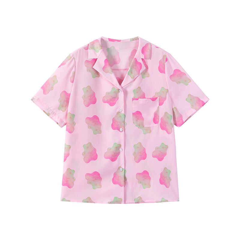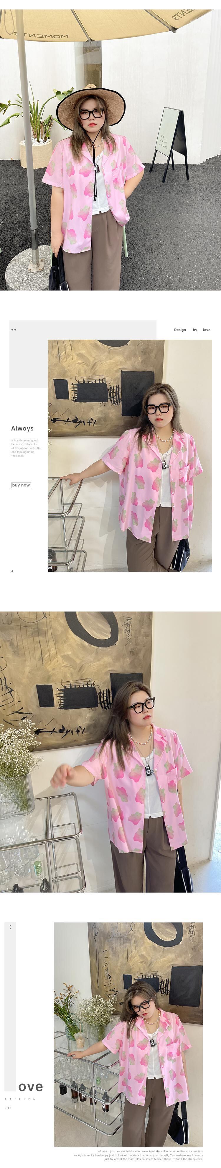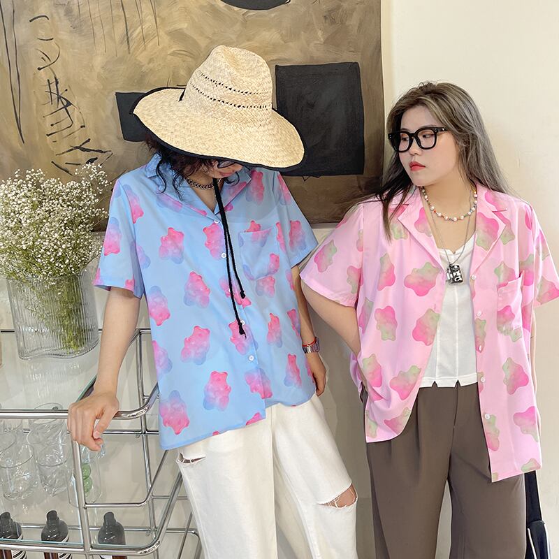 カカは食べない、かっこいい心、太ったmmマカロンカラークマ柄ルーズ半袖シャツ女性 Im_kaka62552340212