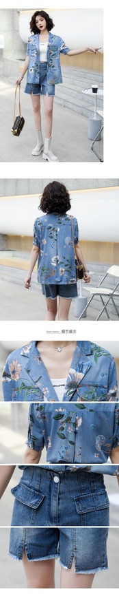 シェンイードゥ夏2021新しいプラスサイズの女性のツーピースサマーファッションプリントデニムスーツ2138 大きめサイズ 夏物 SDU91605687605