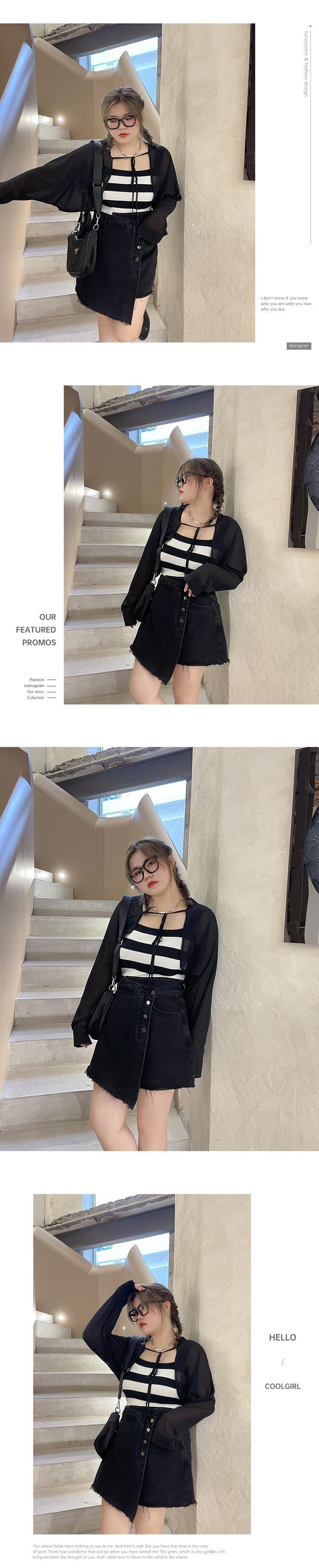 カカはそれを食べないでください、肉を覆うための太いmmの夏のストラップ、日焼け止めカーディガンの縞模様のベストスーツの女性として転生します サマー 夏物 ストライプ Im_kaka12896702736