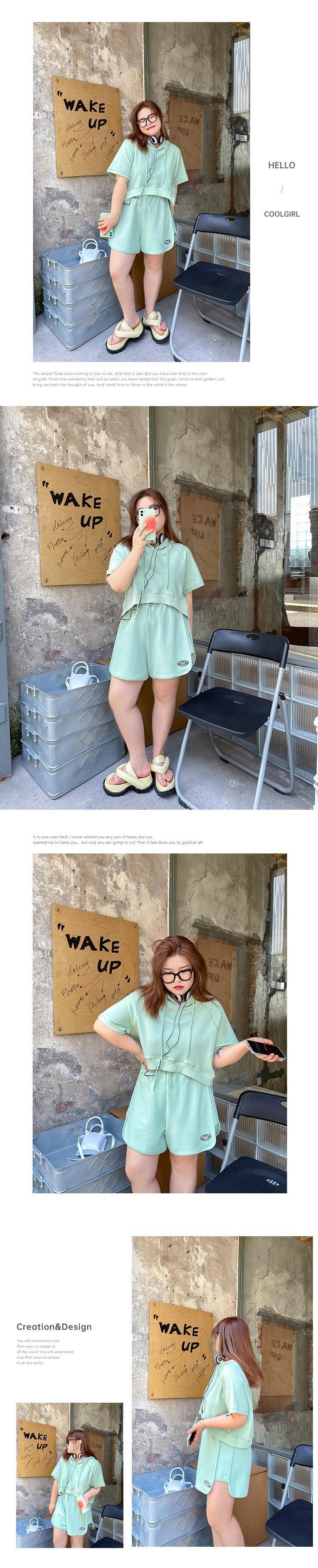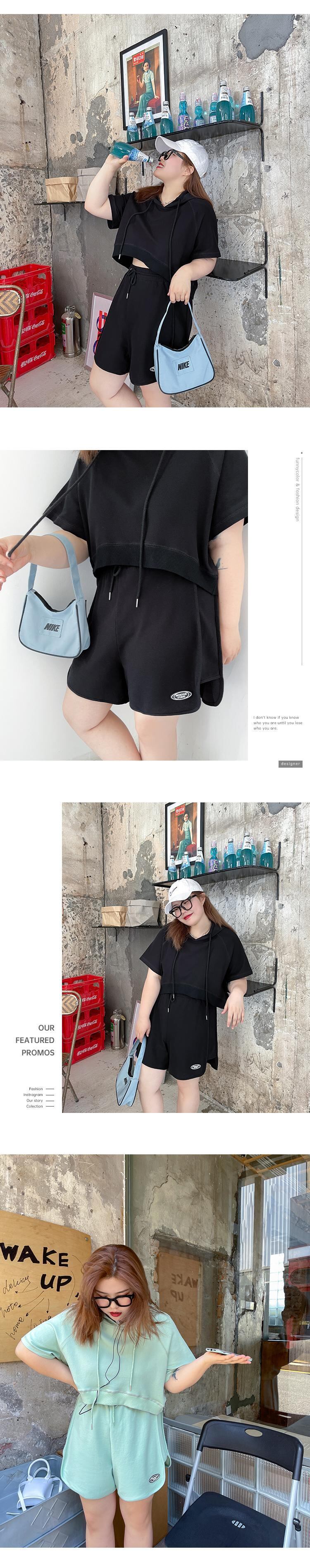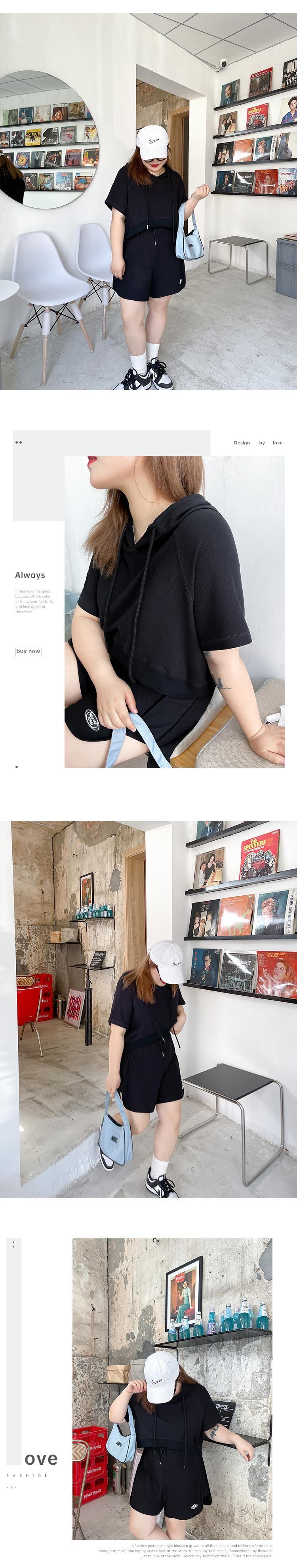 カカは食べないで、スポーツモードをオンにして、太いmmのカジュアルなフード付き半袖セーター、伸縮性のあるウエストショーツスーツ エラスティック ブルマー Im_kaka22711886814