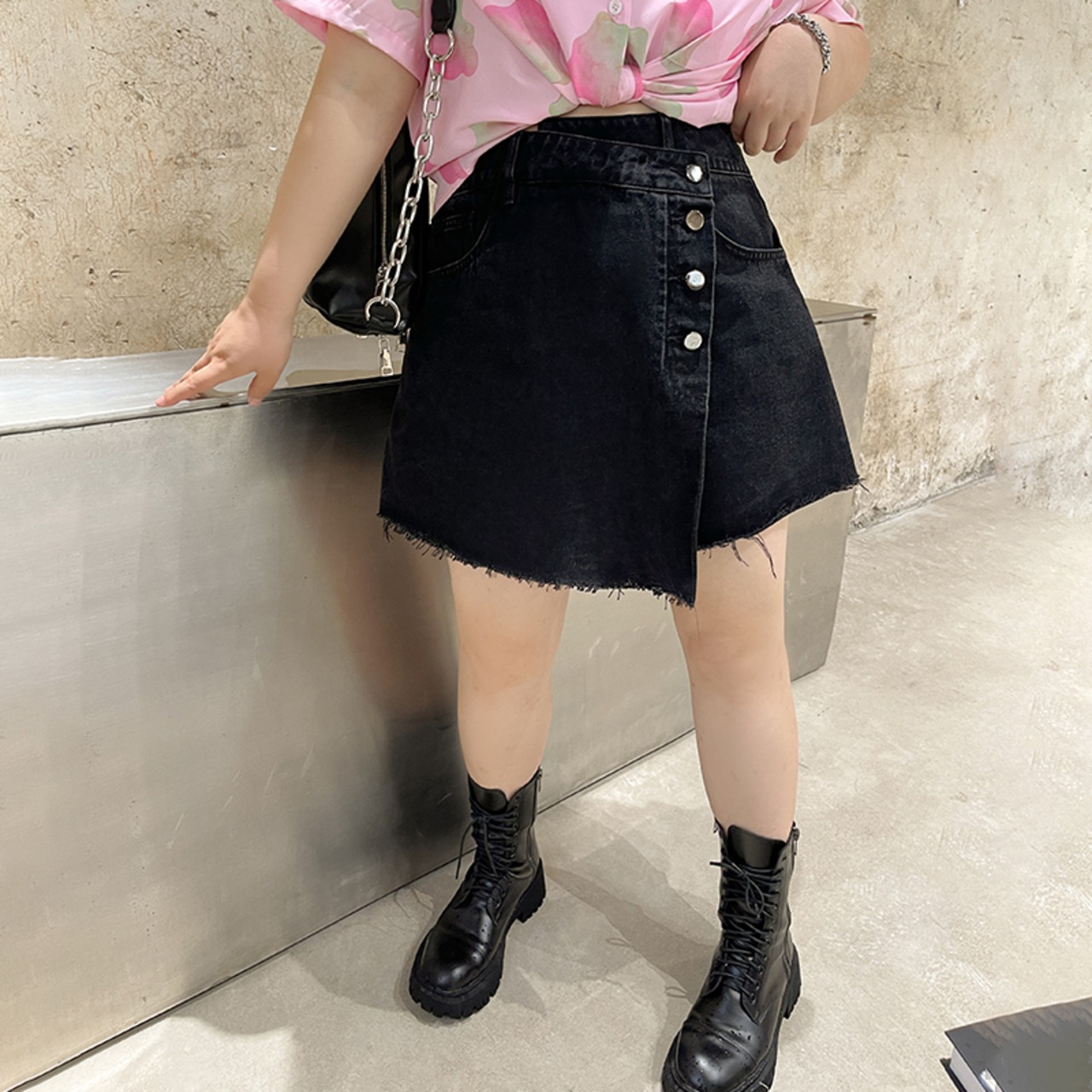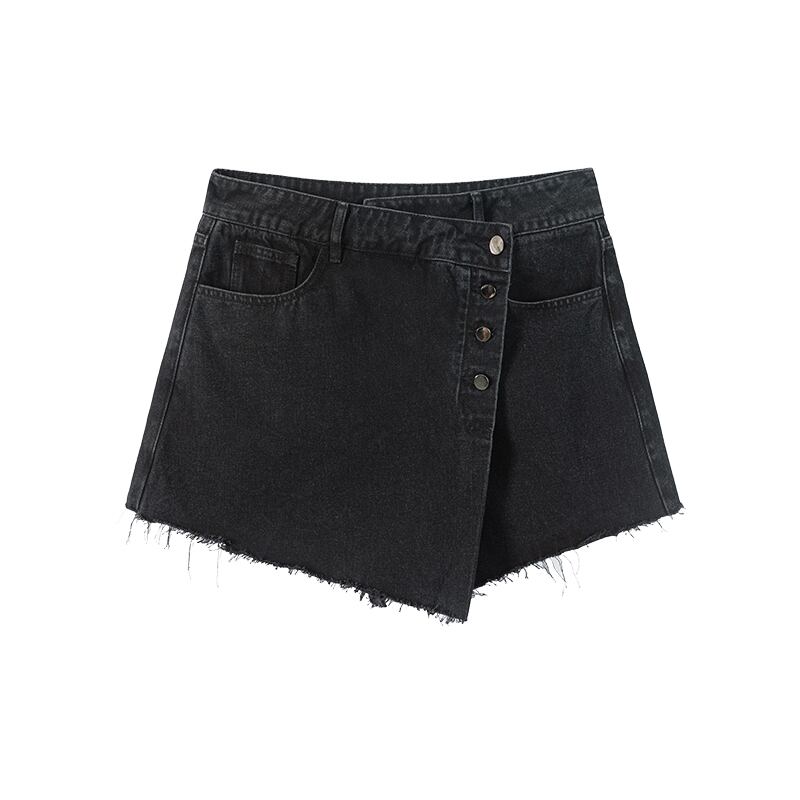カカは食べない、プレミアム感あふれる、ファットmmサマーブラックハイウエストイレギュラー擦り切れデニムショートパンツ 夏物 ショーツ ブルマー Im_kaka98713516794