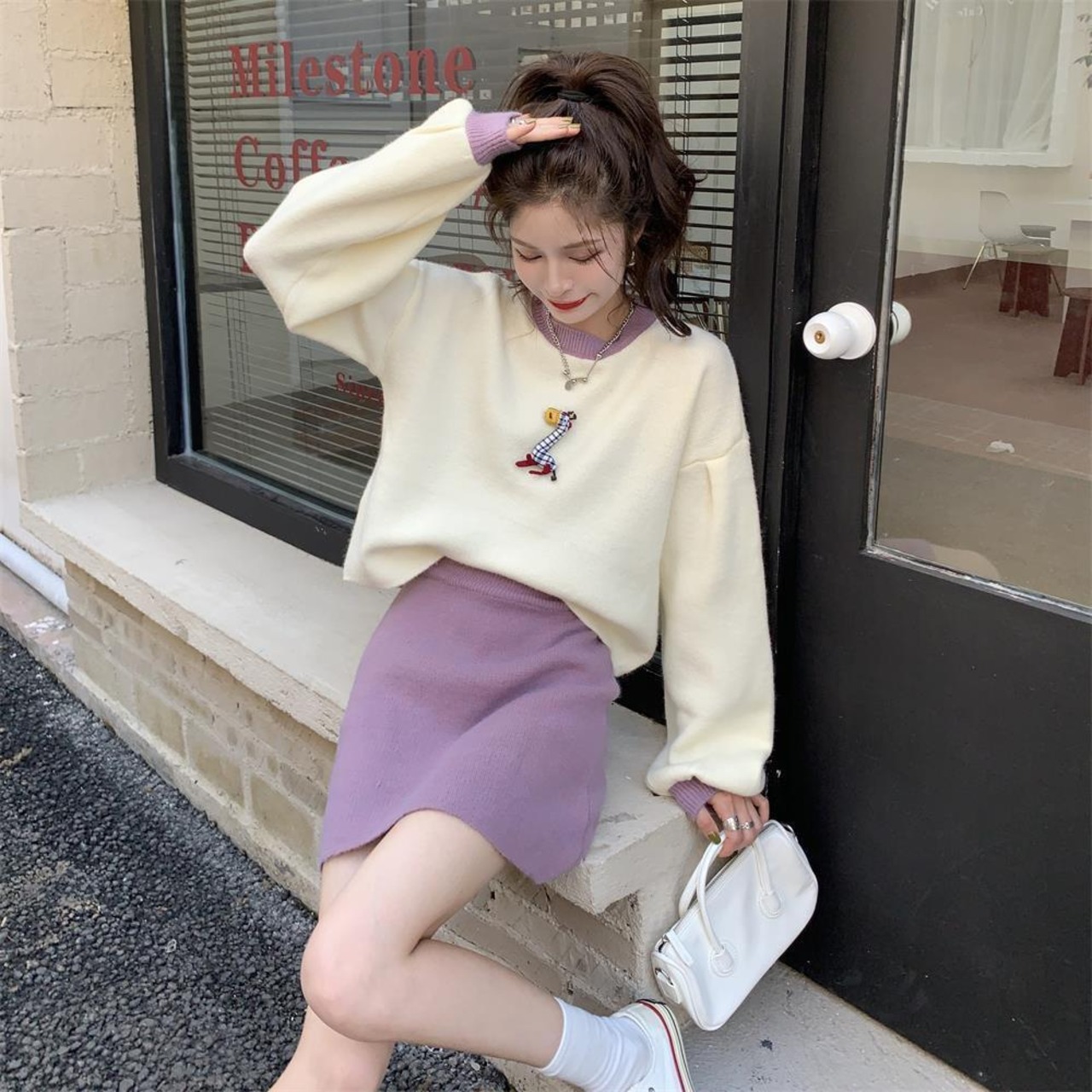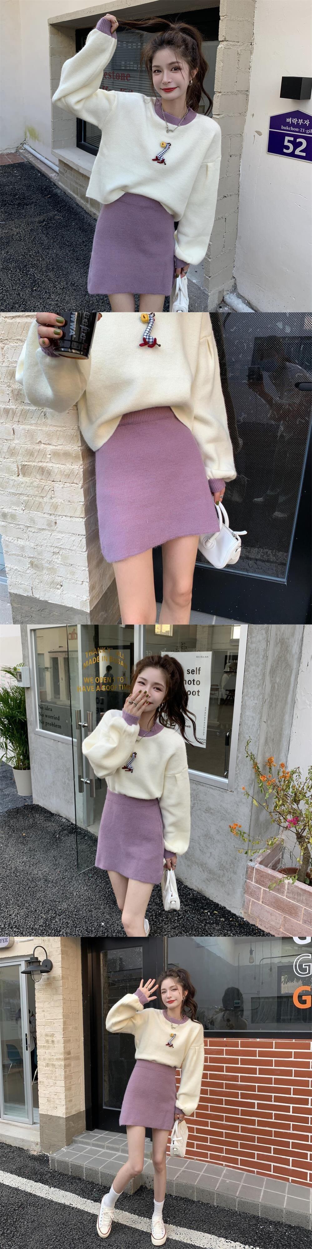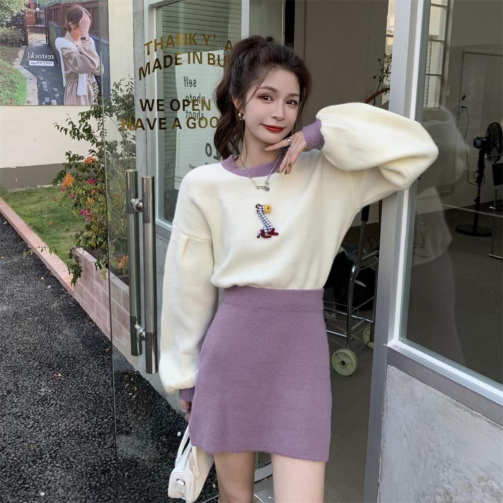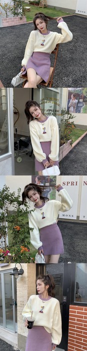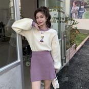 オータムルーズショートカラーセーター ハイウェストウェストスリムドレス 大人ガーリー スウィート キュート カジュアル 秋物 普寧59243808342