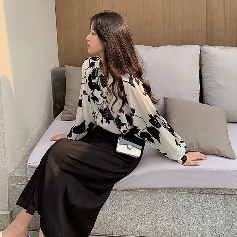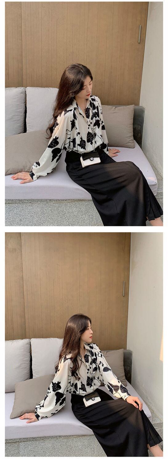スプリングオータム薄手スタイルフローラルドレス 大きめサイズ 春物 秋物 花柄 普寧40048262300