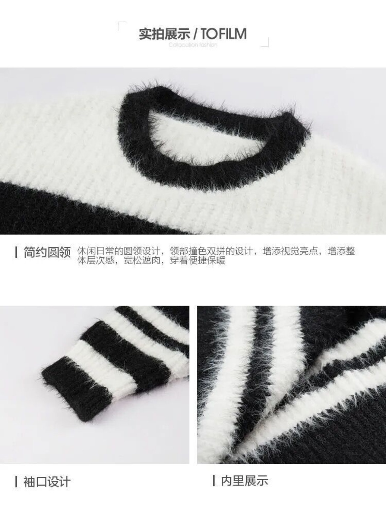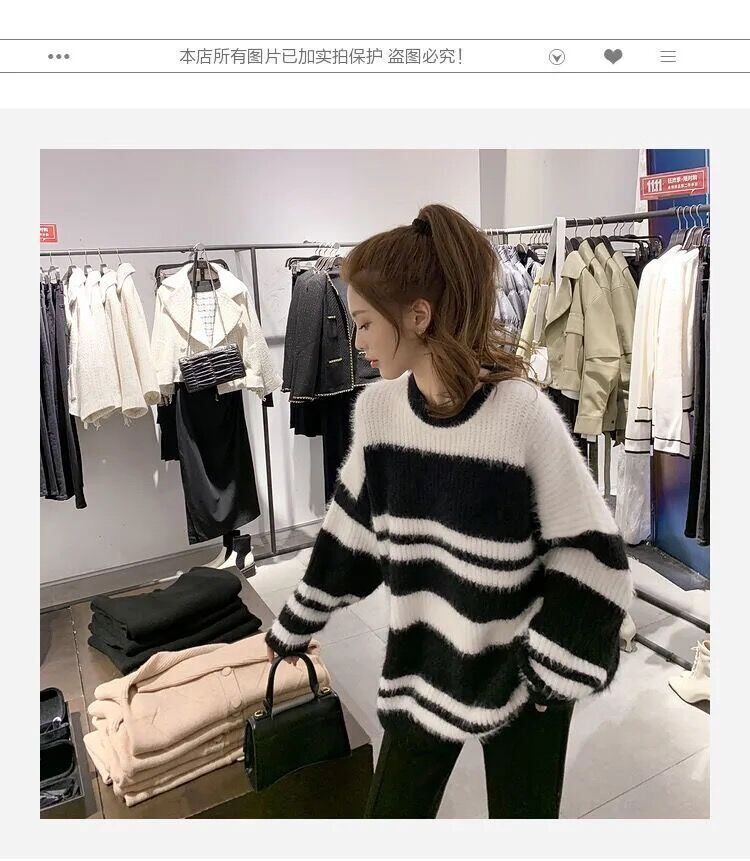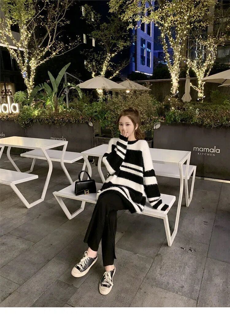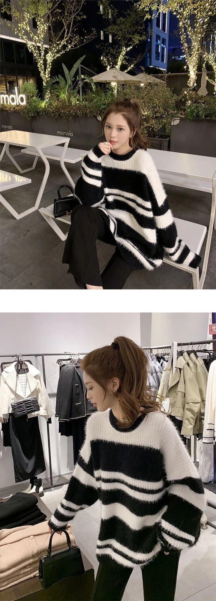 スタイルストライプカラープルオーバー セーター オータムウィンタールーズウールトップス 秋物 冬物 普寧87760415262