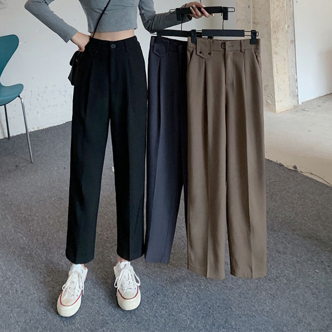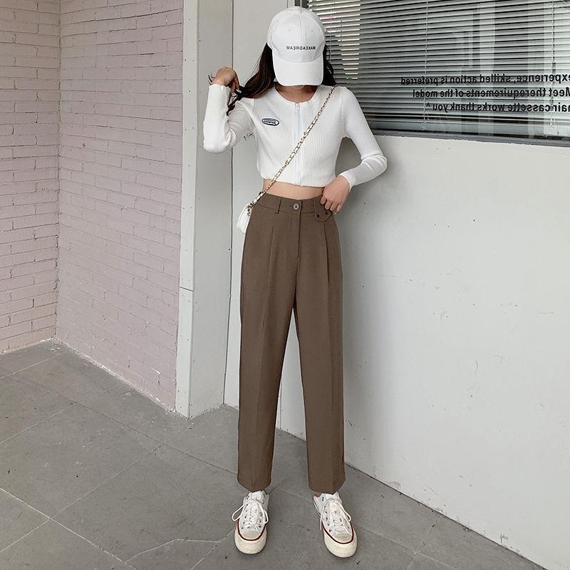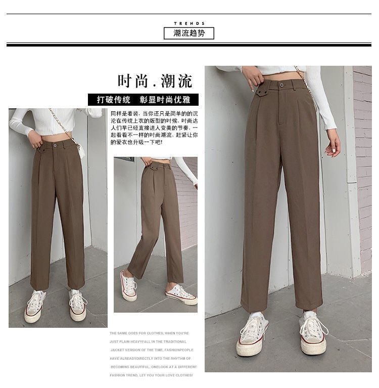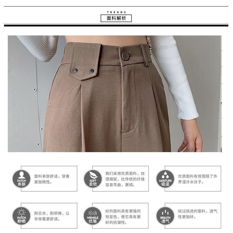 オータムハイウェストウェストパンツ ルーズカジュアル 大きめサイズ 秋物 普寧16963933476