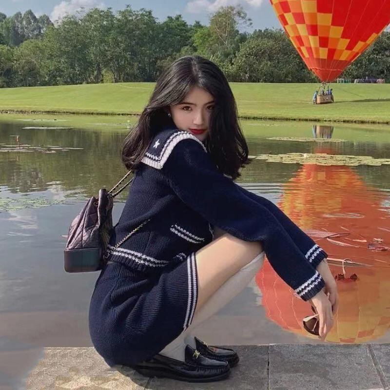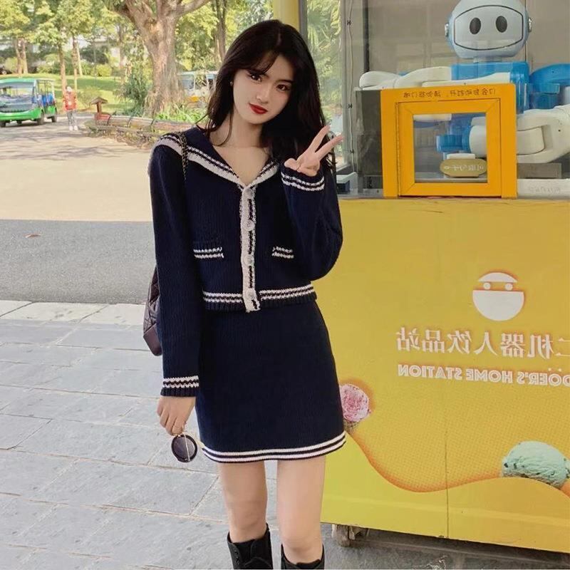 オータムウィンタースタイルネイビーカラースカート ストリート 秋物 冬物 普寧99669427655