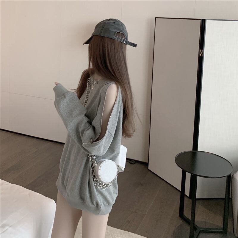 セーター レディーススプリングオータム薄手ルーズスタイルトップス ロング 春物 秋物 オフショルダー 普寧65317616278