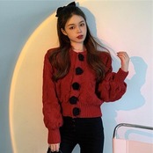 ジャケット オータムウィンターショートセーター スタイルルーズカーディガン 秋物 冬物 普寧14277513128