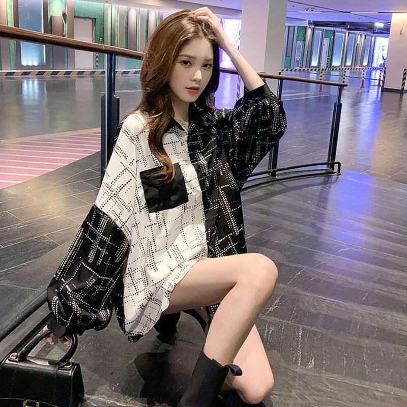 スプリングオータムスタイルルーズシャツ トップス ロング 大きめサイズ 春物 秋物 普寧22132875086