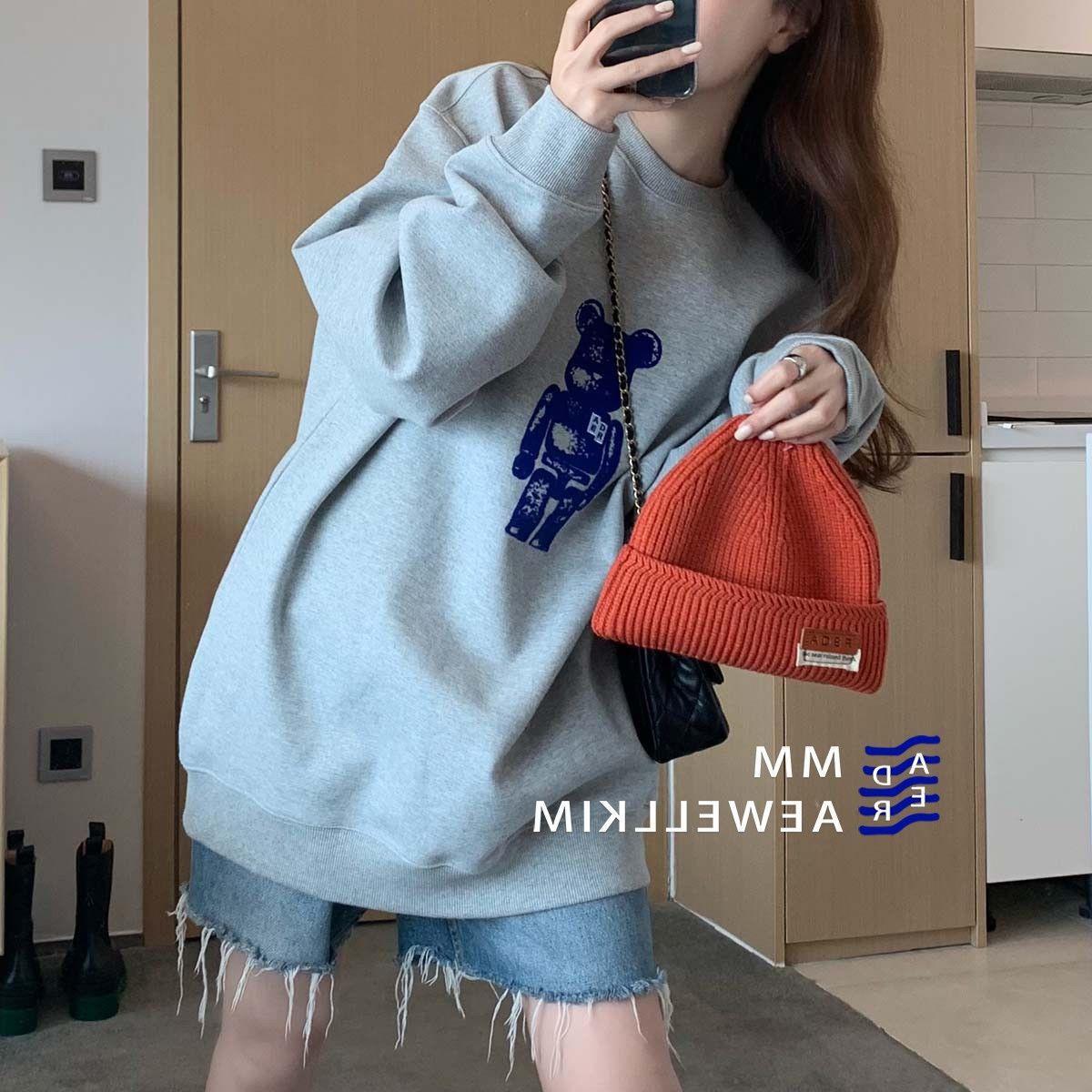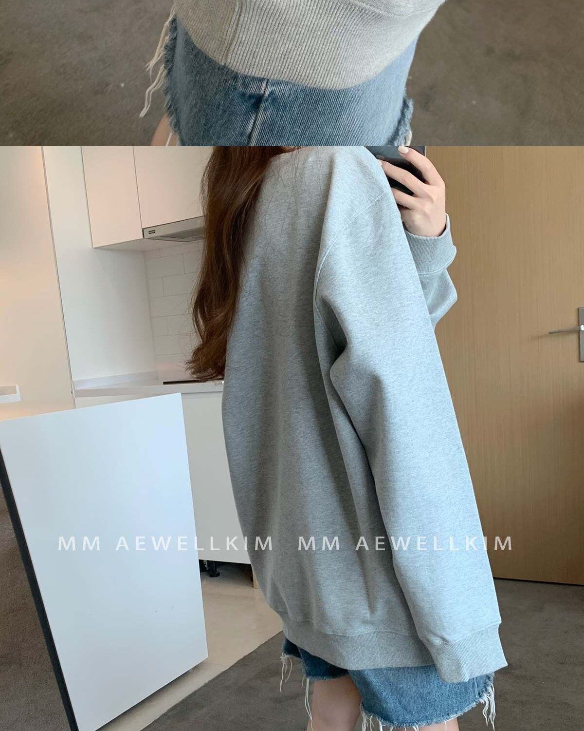 スプリングオータムグレーラウンドネックセーター 薄手ルーズシャツ ロング レッド 刺繍 春物 秋物 Oネック 普寧43134778115