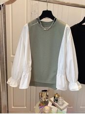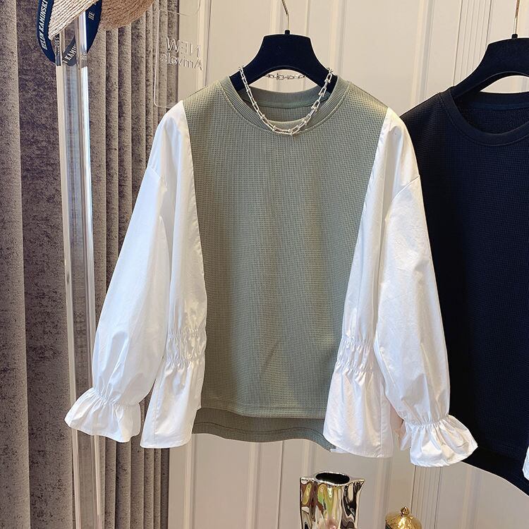 ニットセーター スリーブルーズオータムトップス ロング 秋物 ヨーロピアン ステッチ 普寧74815134279