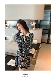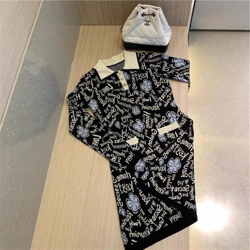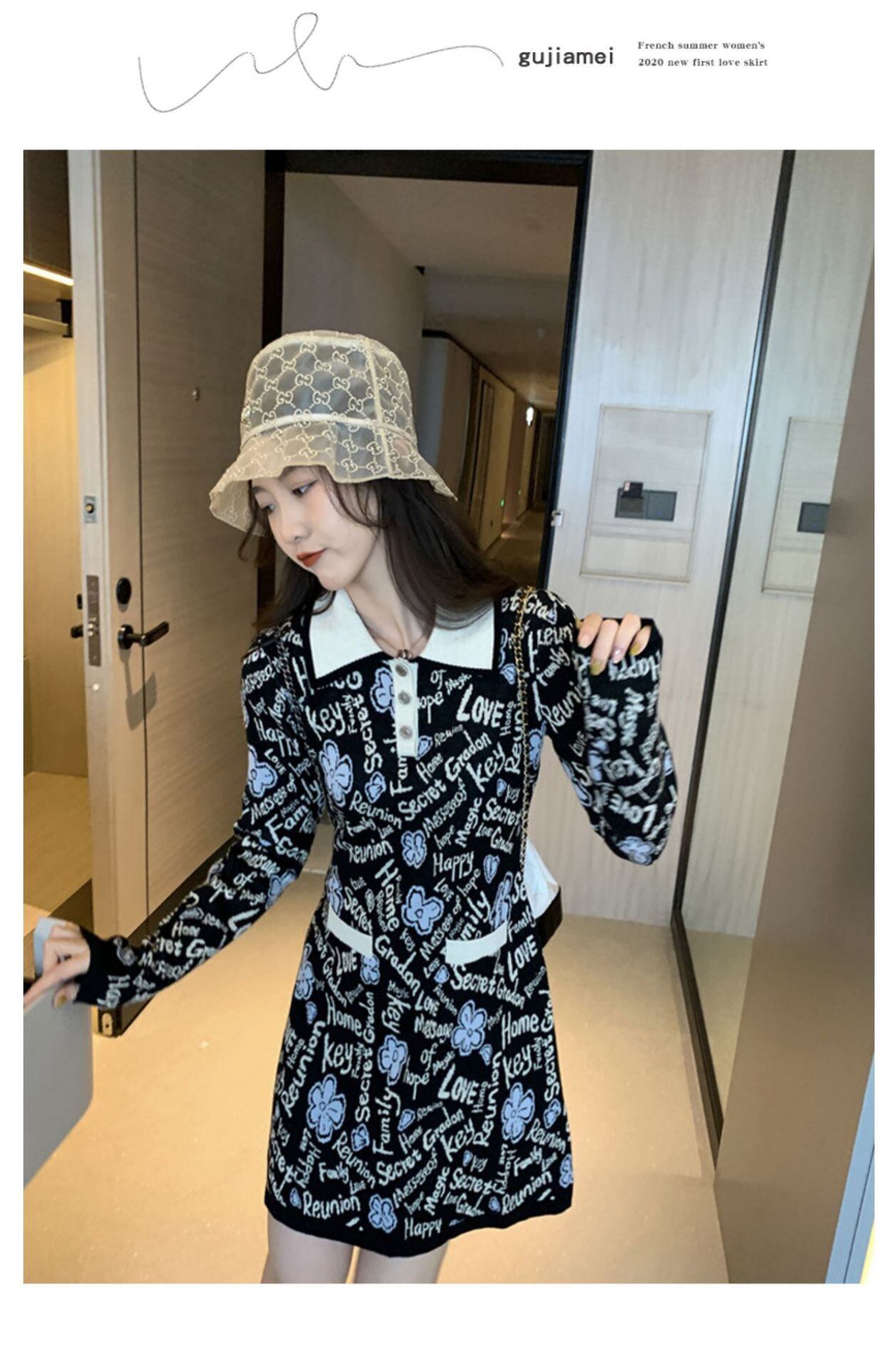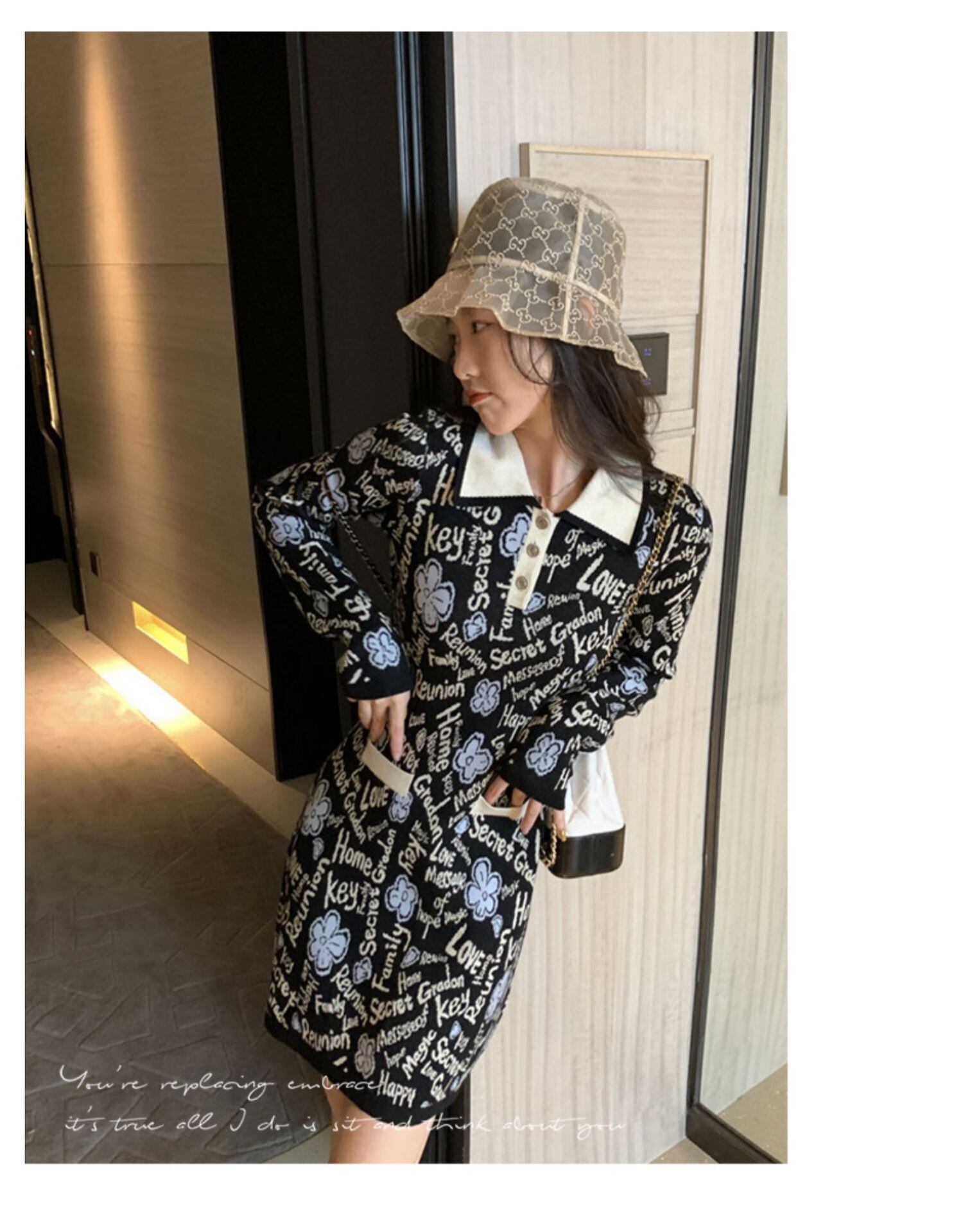 ニットドレス オータムスリムブラックスカート ロング 秋物 普寧2029554316