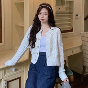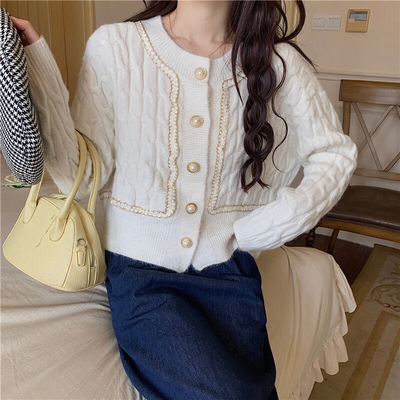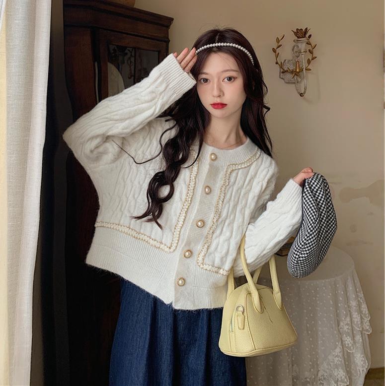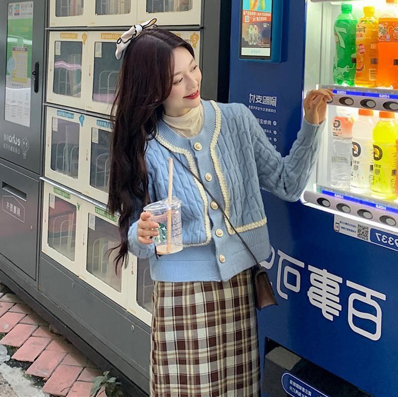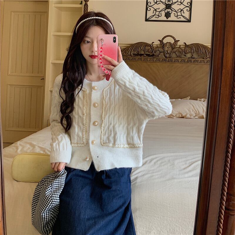 オータムパターンカーディガンセーター ジャケット ラウンドネック ロング 秋物 Oネック 普寧13365005212