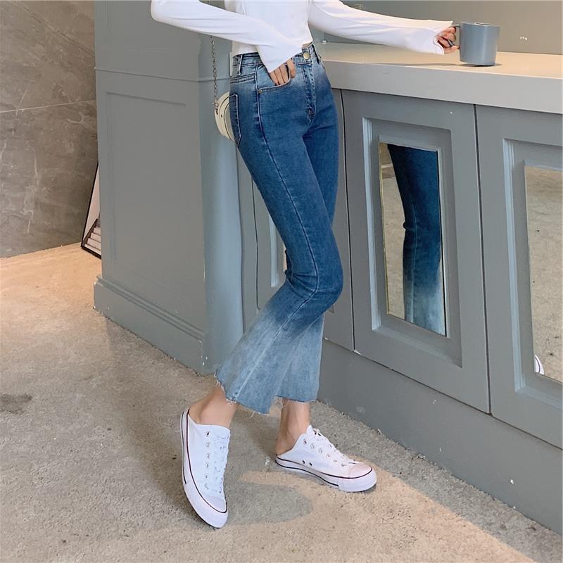 スプリングオータムハイウェストジーンズ レディース薄手パンツ レッド 大きめサイズ 春物 秋物 普寧68302663361