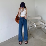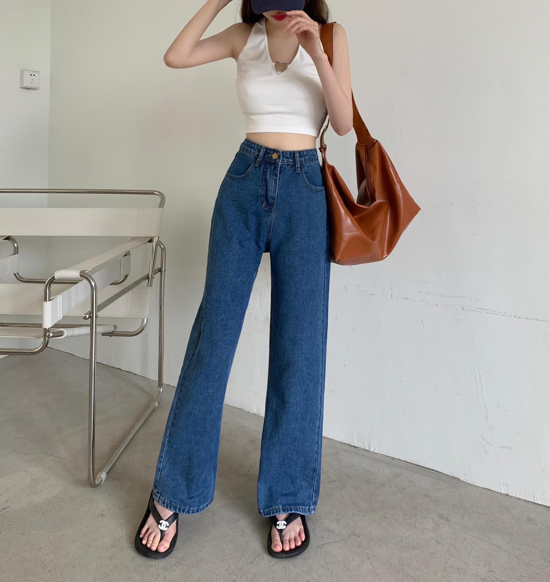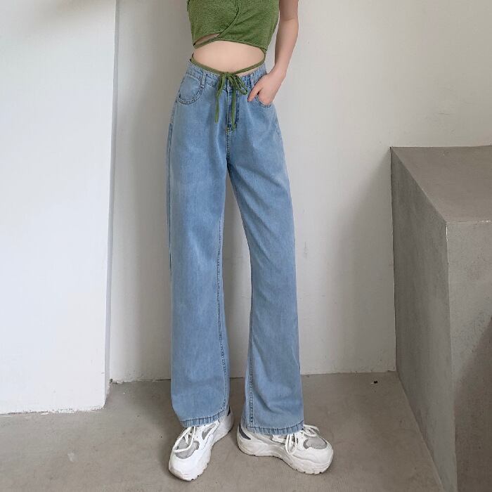 ワイドレッグパンツ ジーンズ ウェスト薄手ルーズ 大きめサイズ ワイドパンツ 普寧97093654851