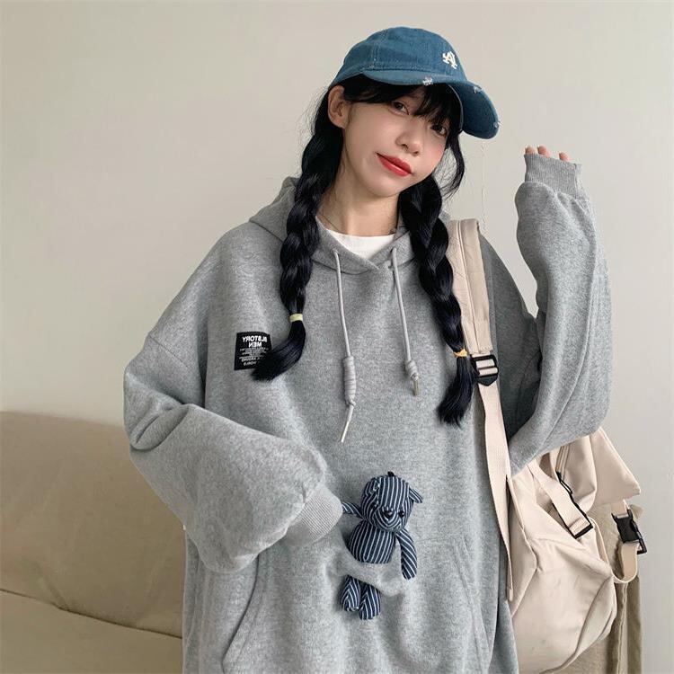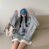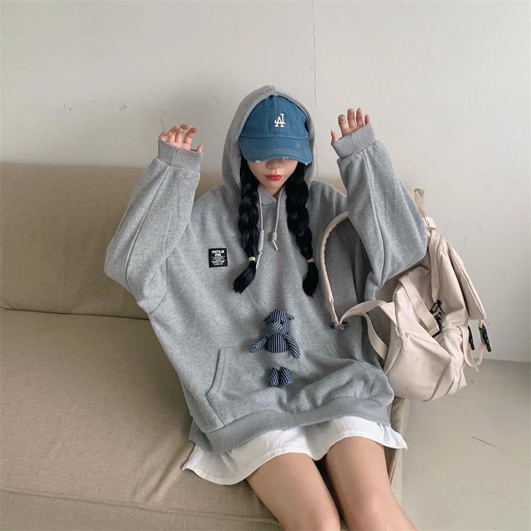 オータムルーズプリントフードプルオーバー セーター トップス レディース ロング 秋物 ステッチ 普寧74091759874