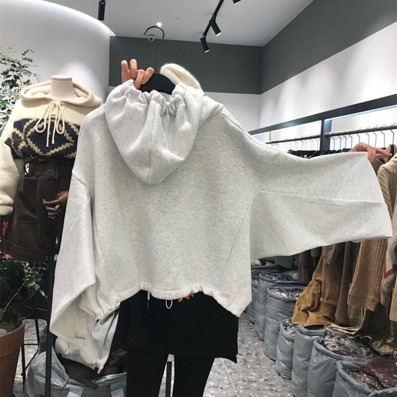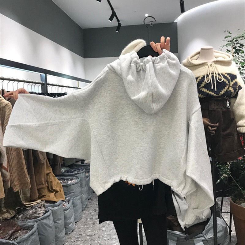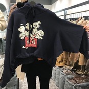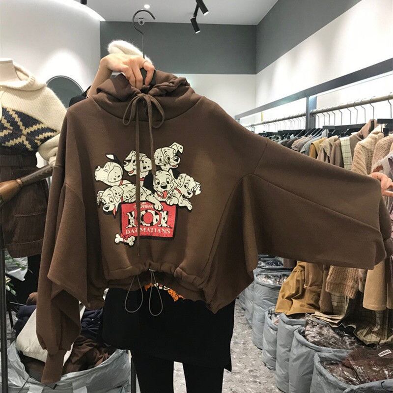 スタイルセーター レディースハイウェストウェストプリント柄フードブラックショートルーズコート 普寧52687401916