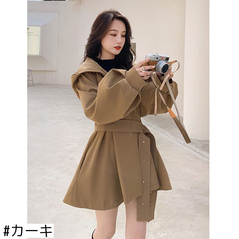 フードオータムスタイルスリーブカジュアルコート ジャケット ランタンスリーブ 秋物 普寧341592441