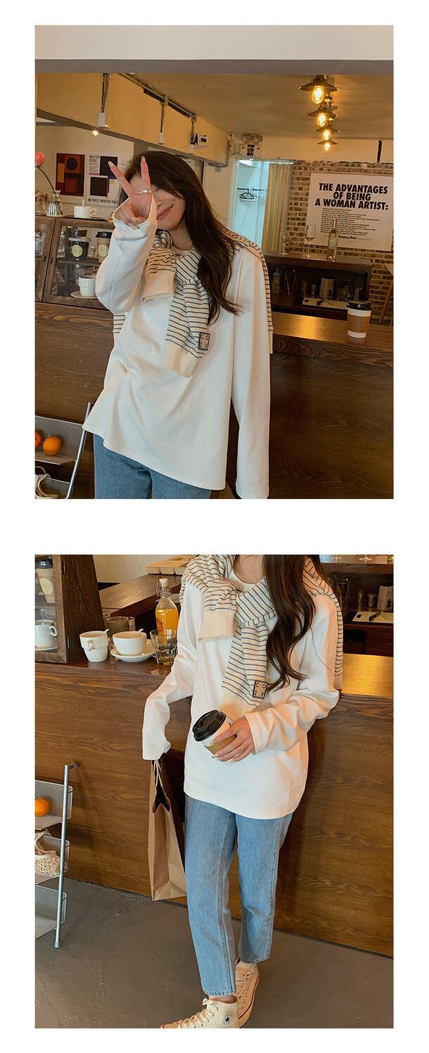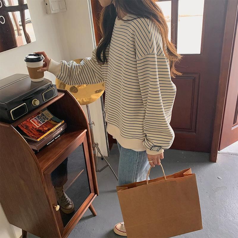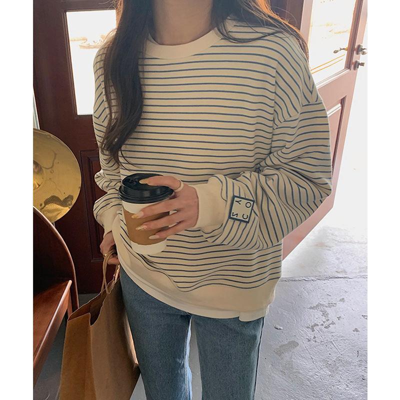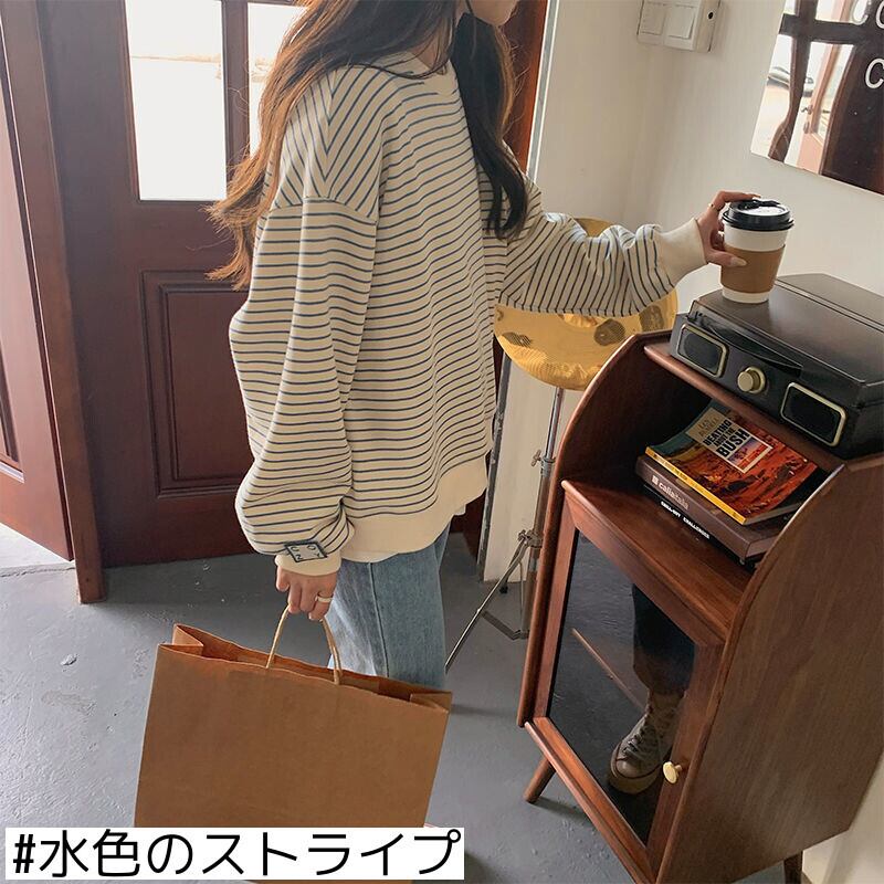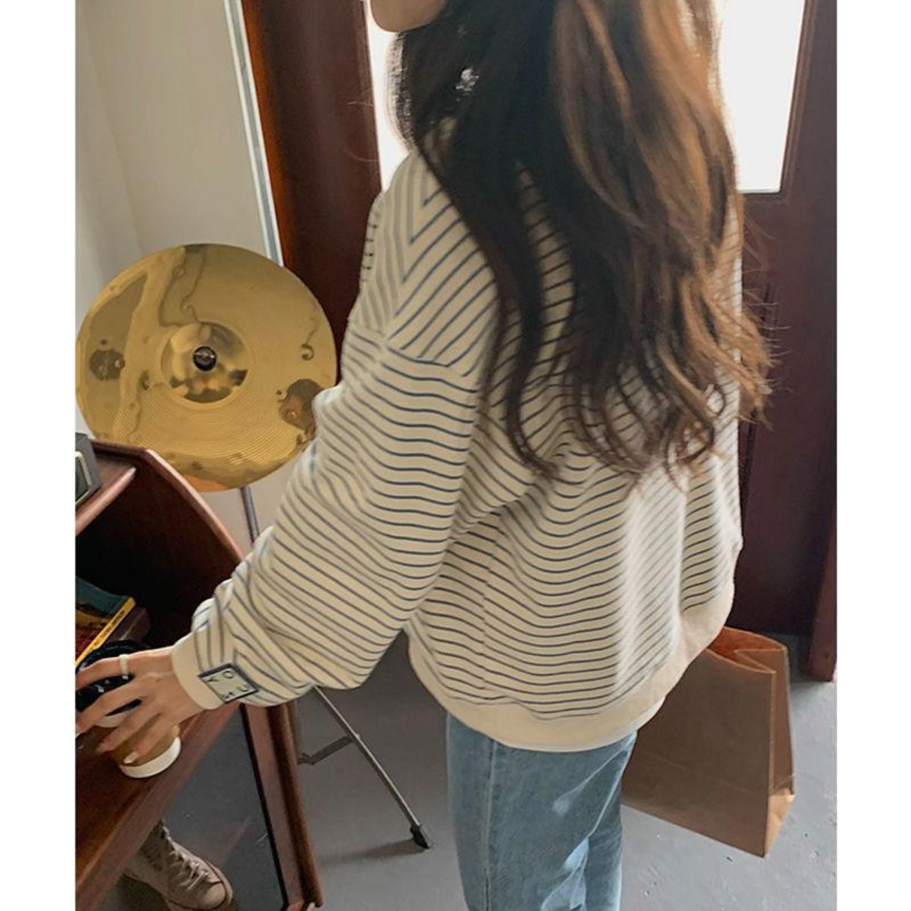 ストライプセーター オータムルーズプルオーバー トップス ロング 秋物 普寧33476874524
