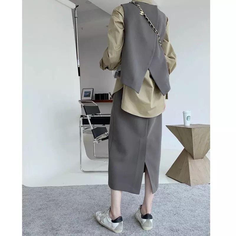 色:ライトカーキシャツシングル,白いシャツワンピース,グレーのコーヒーチョッキ+スカートツーピーススーツ,ネイビーブルーのチョッキ+スカートのツーピーススーツ,ライトカーキシャツ+グレーコーヒーベスト+スカート3点セット,ホワイトシャツ+ネイビーブルーベスト+スカート3点セット