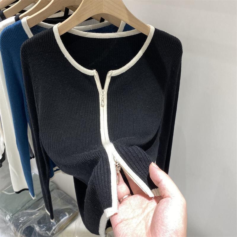 ダブルジッパーニットカーディガンオータムスタイルシャツ トップス ロング 秋物 ヨーロピアン 普寧56121857557