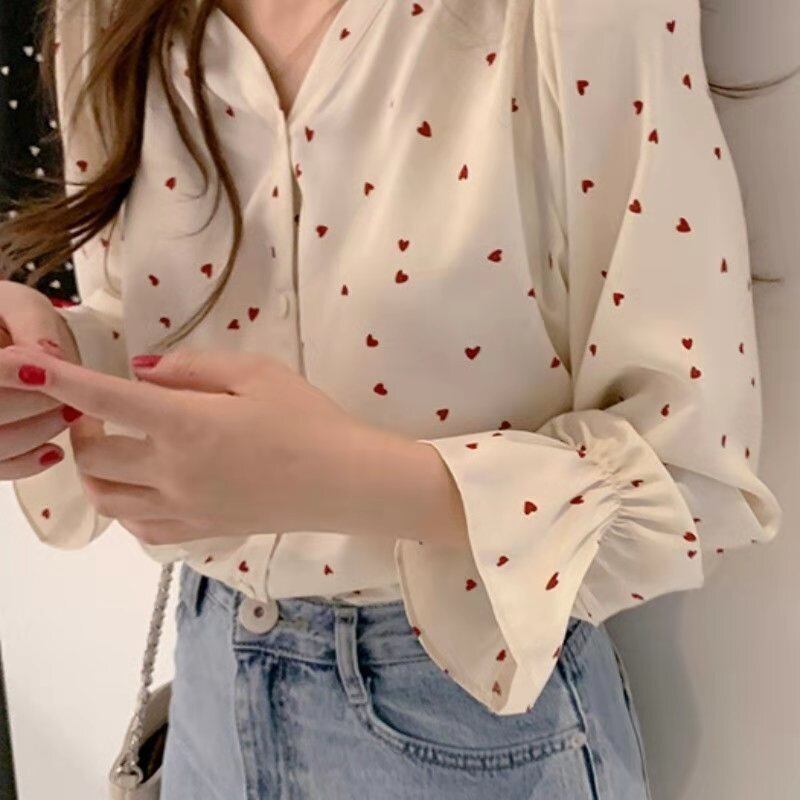 シャツ プリントVネックスタンダードスタイルブラウス ロング レトロ 普寧76118768193