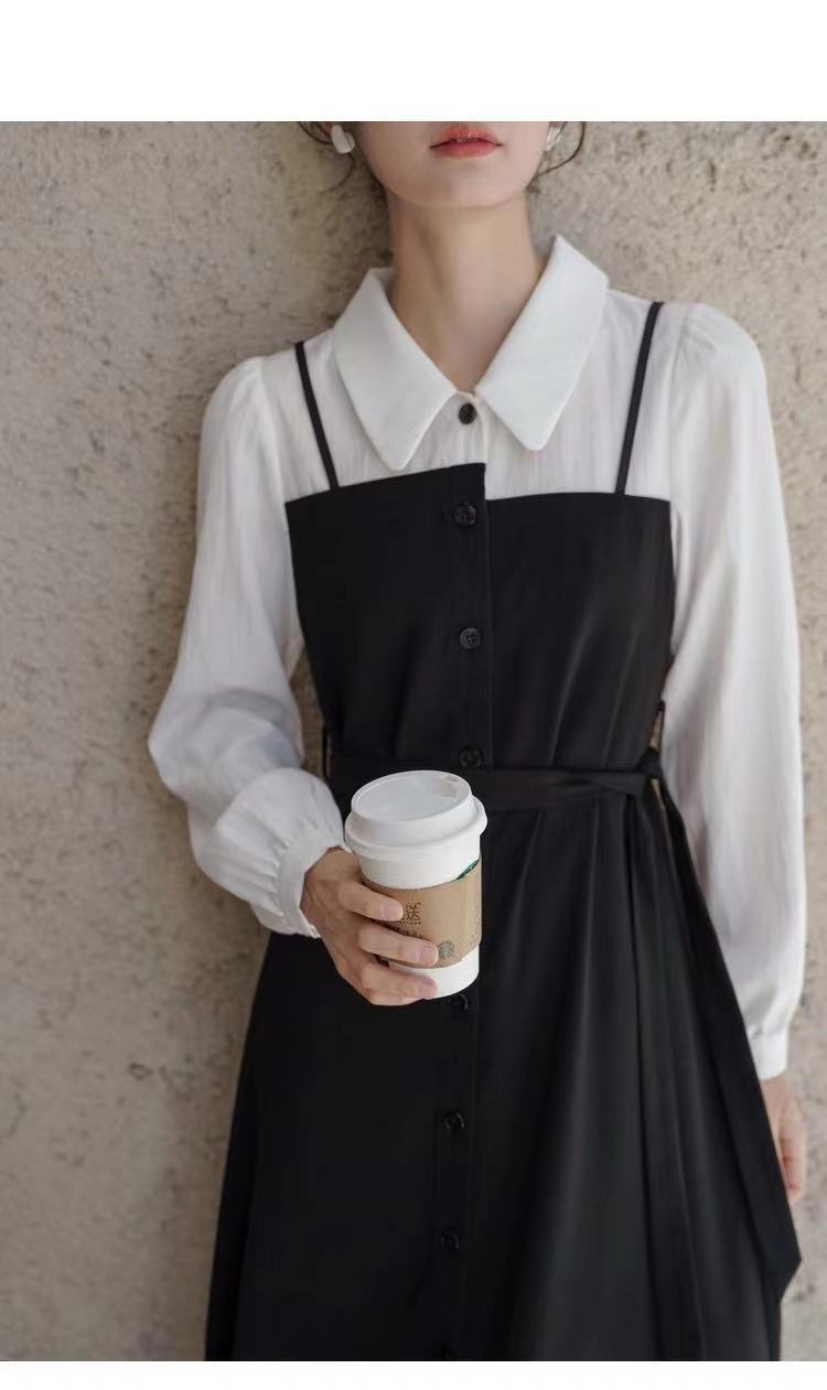 オータムドレス ウェストシャツ カラースカート ロング 秋物 普寧83555308147