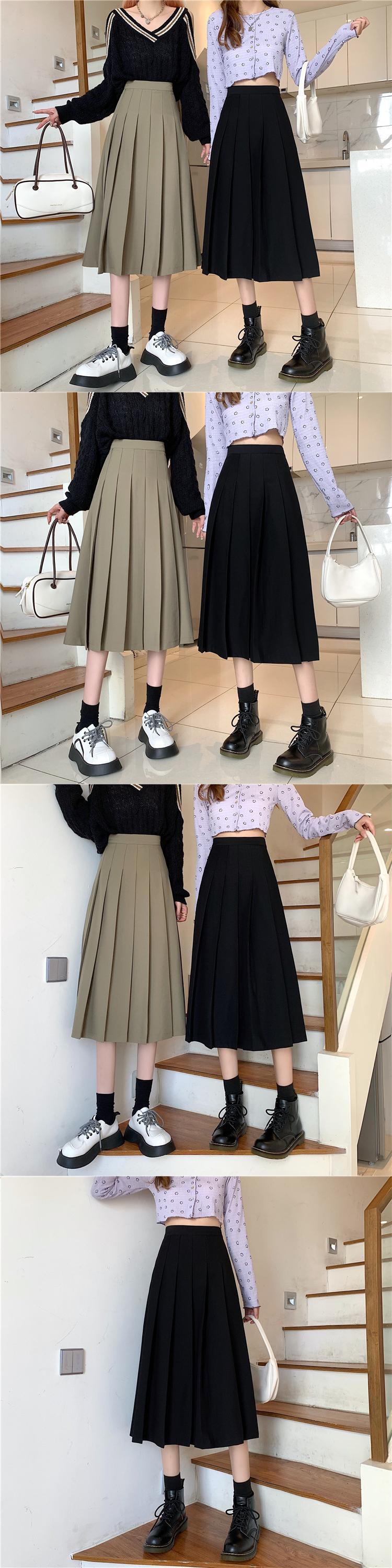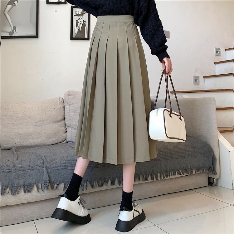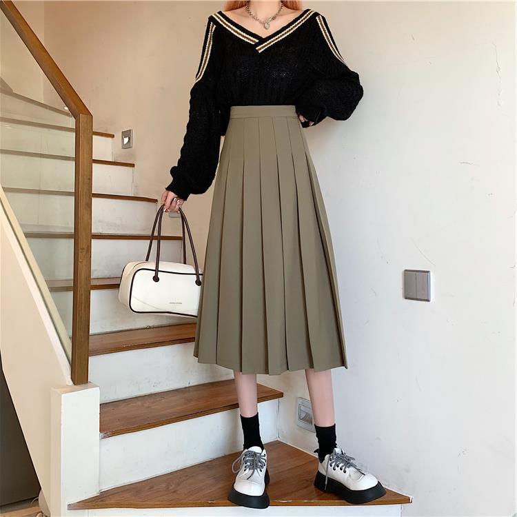 オータムスタイルハイウェストウェストプリーツスカート スリムルーズ 秋物 普寧78849105265