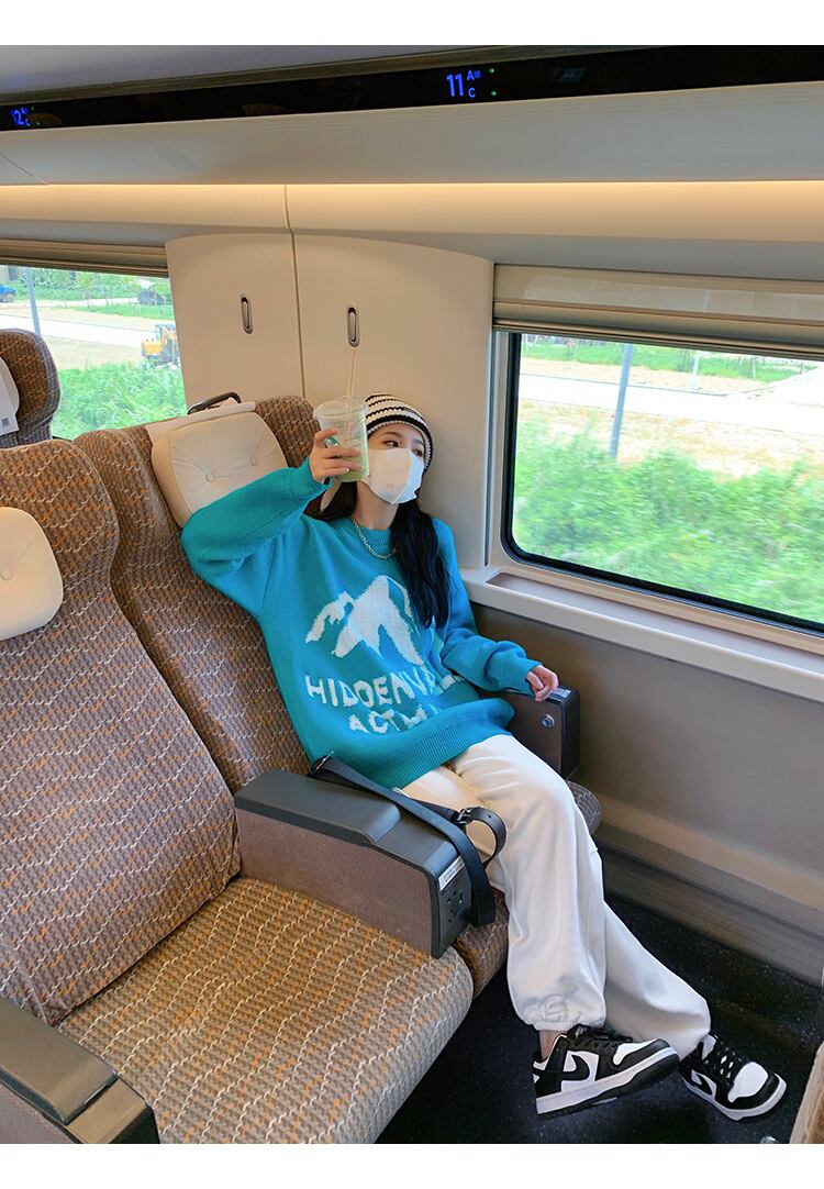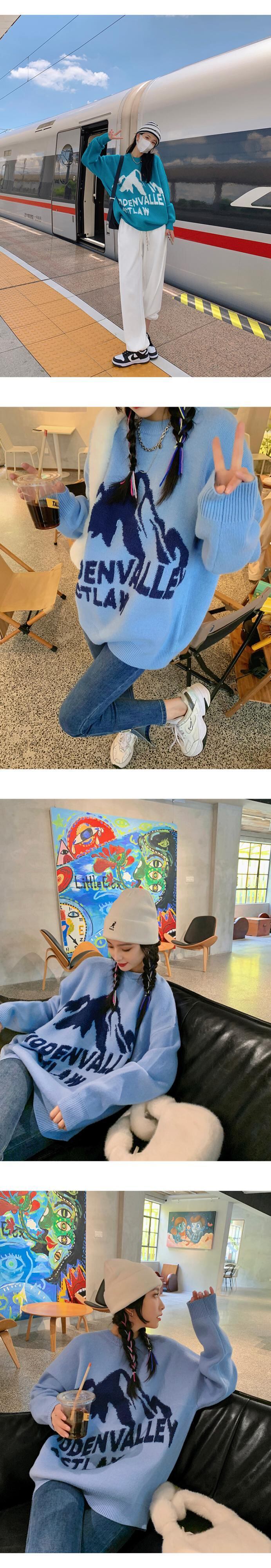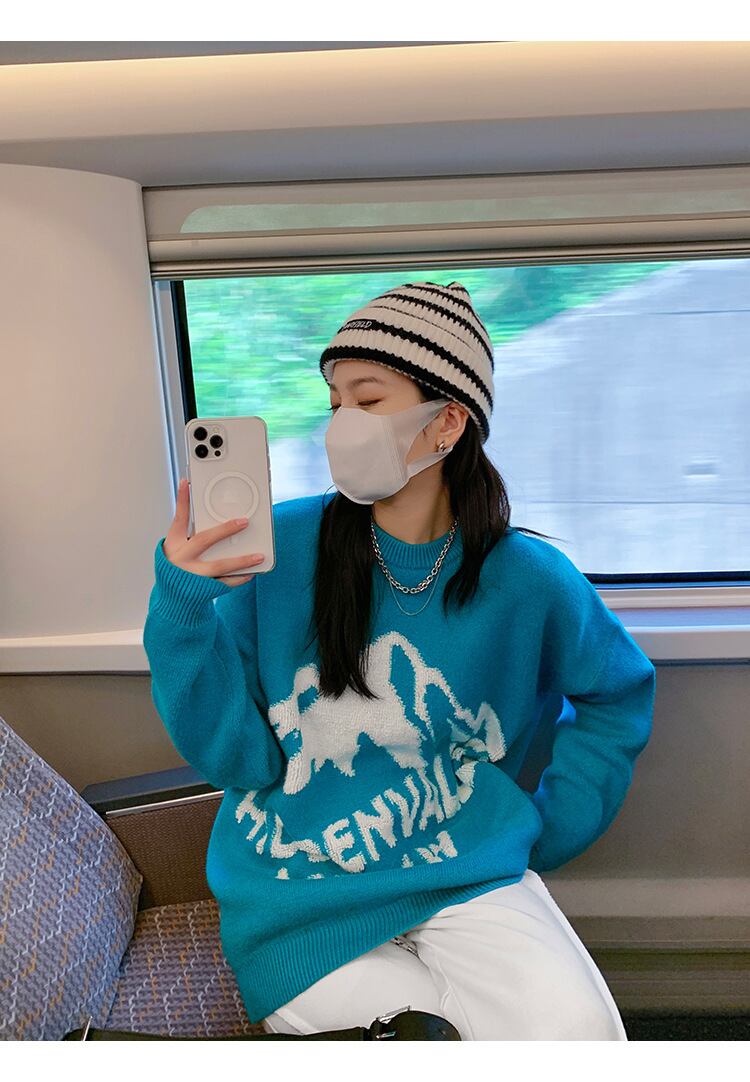 ブルーセーター オータムルーズスタイルニットジャケット トップス 秋物 普寧2315613503