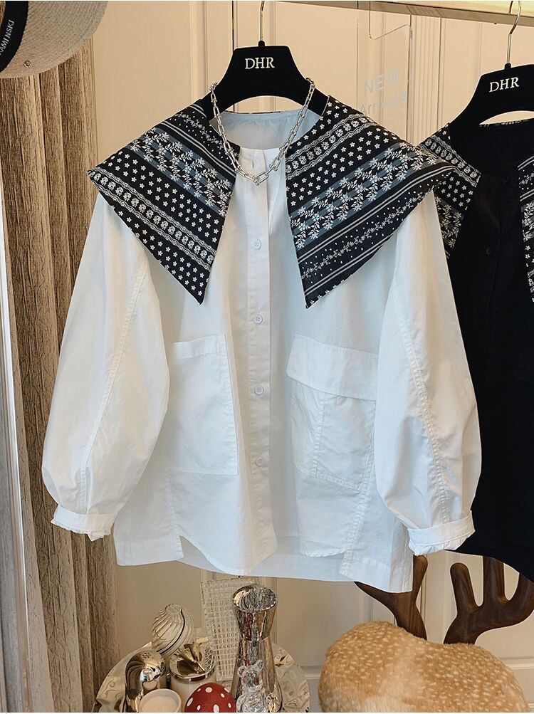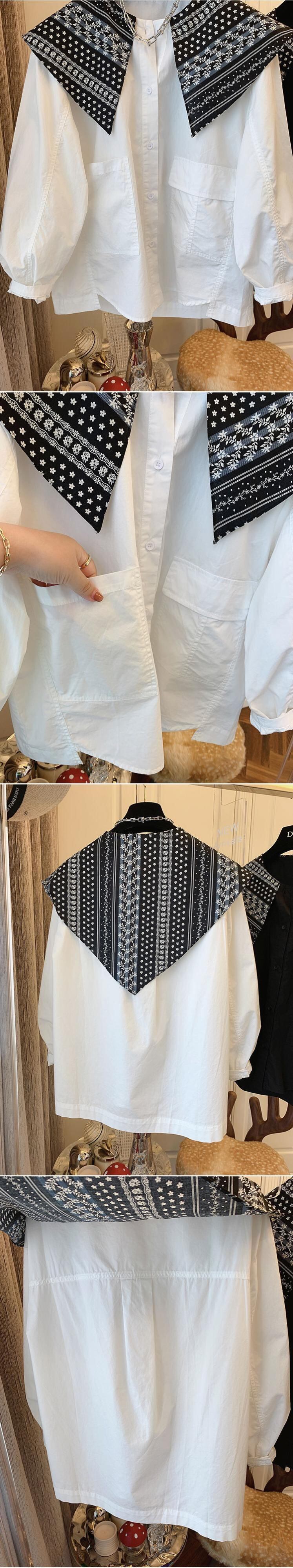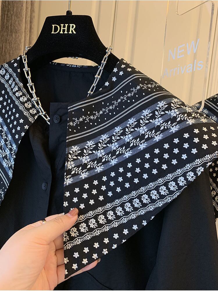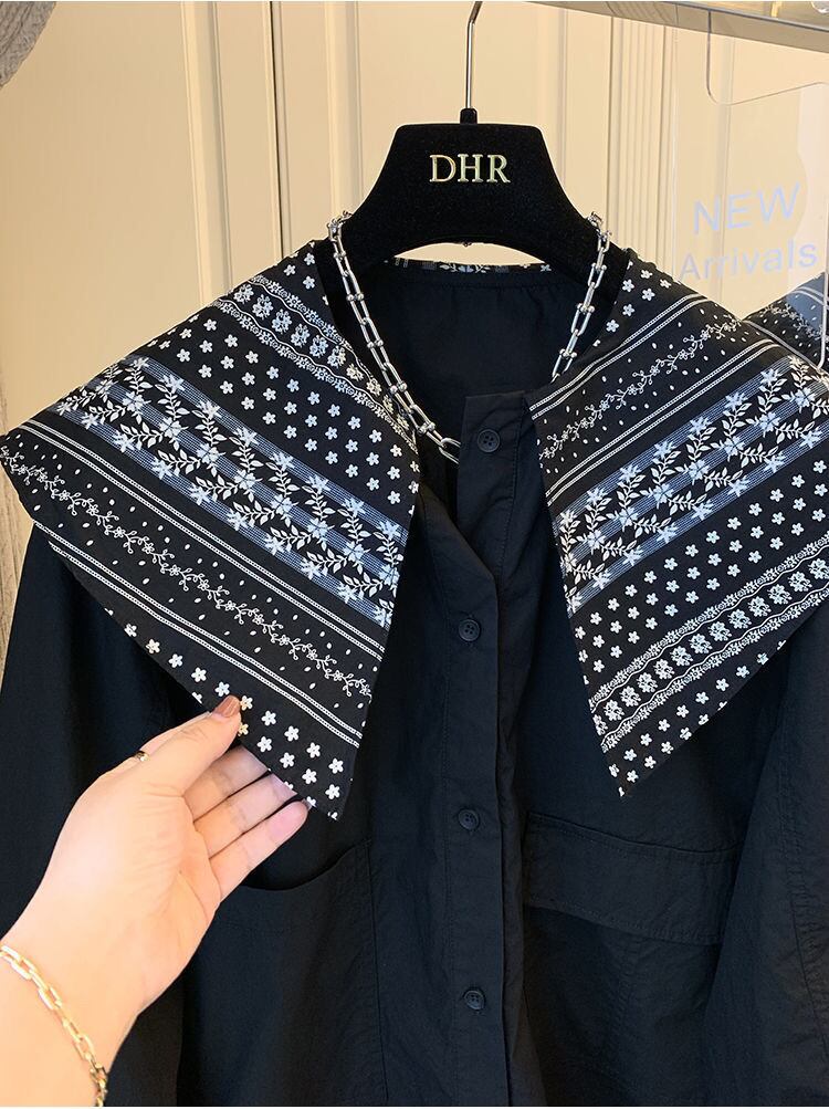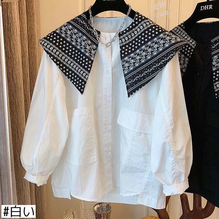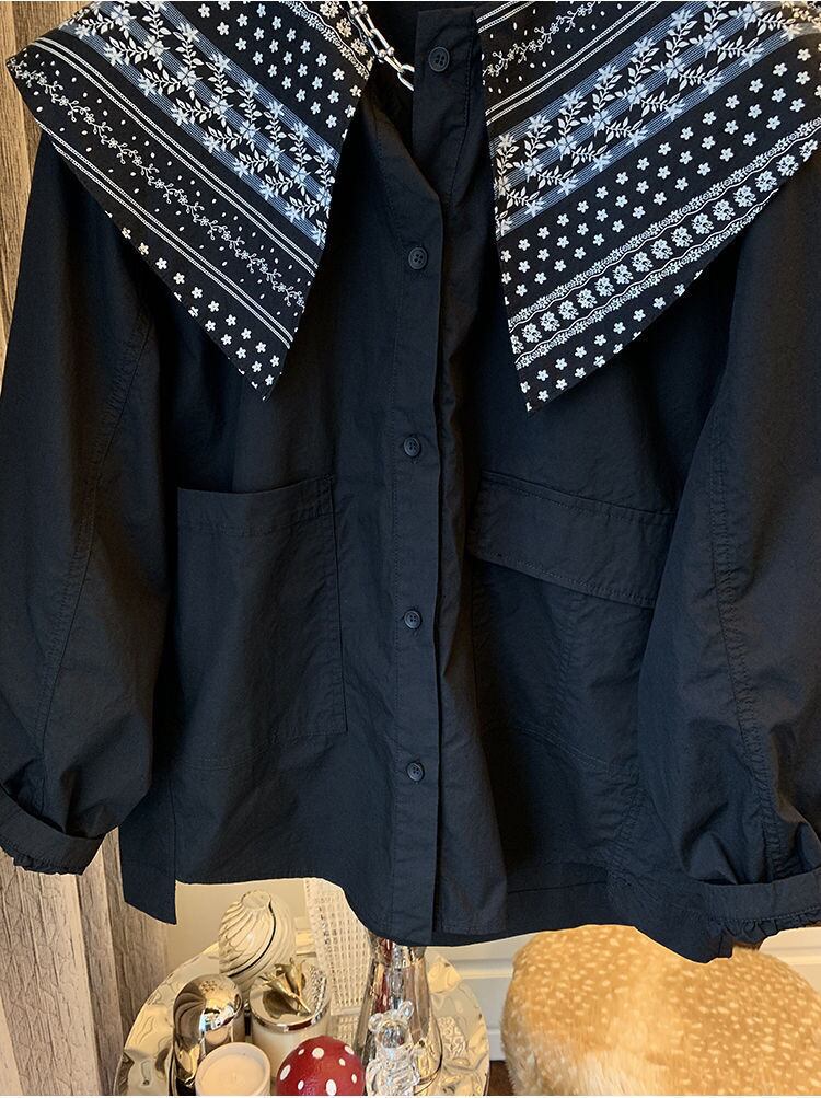 スタンダードルーズカジュアルシャツ トップス ロング レトロ ステッチ 普寧37982536342