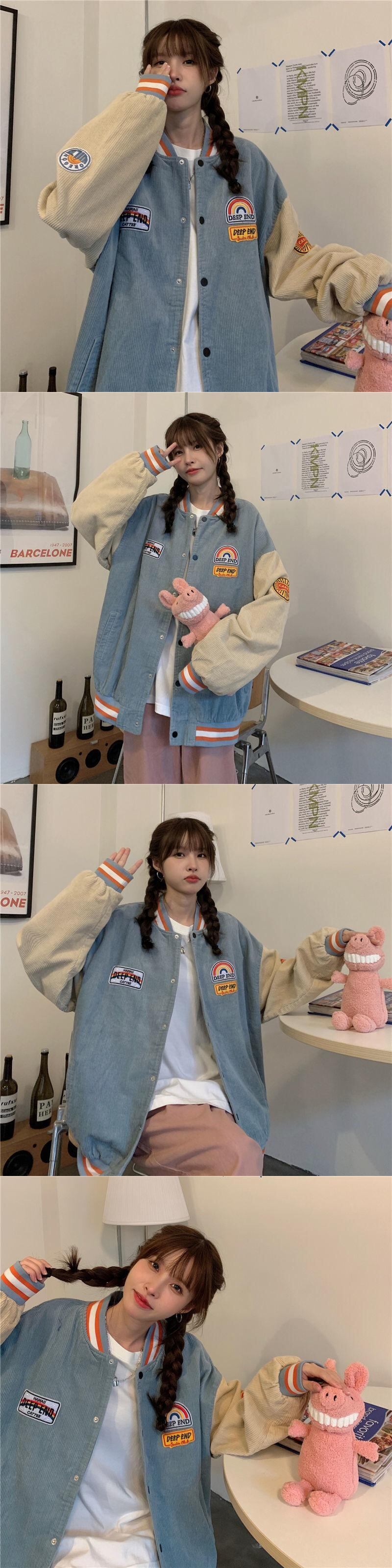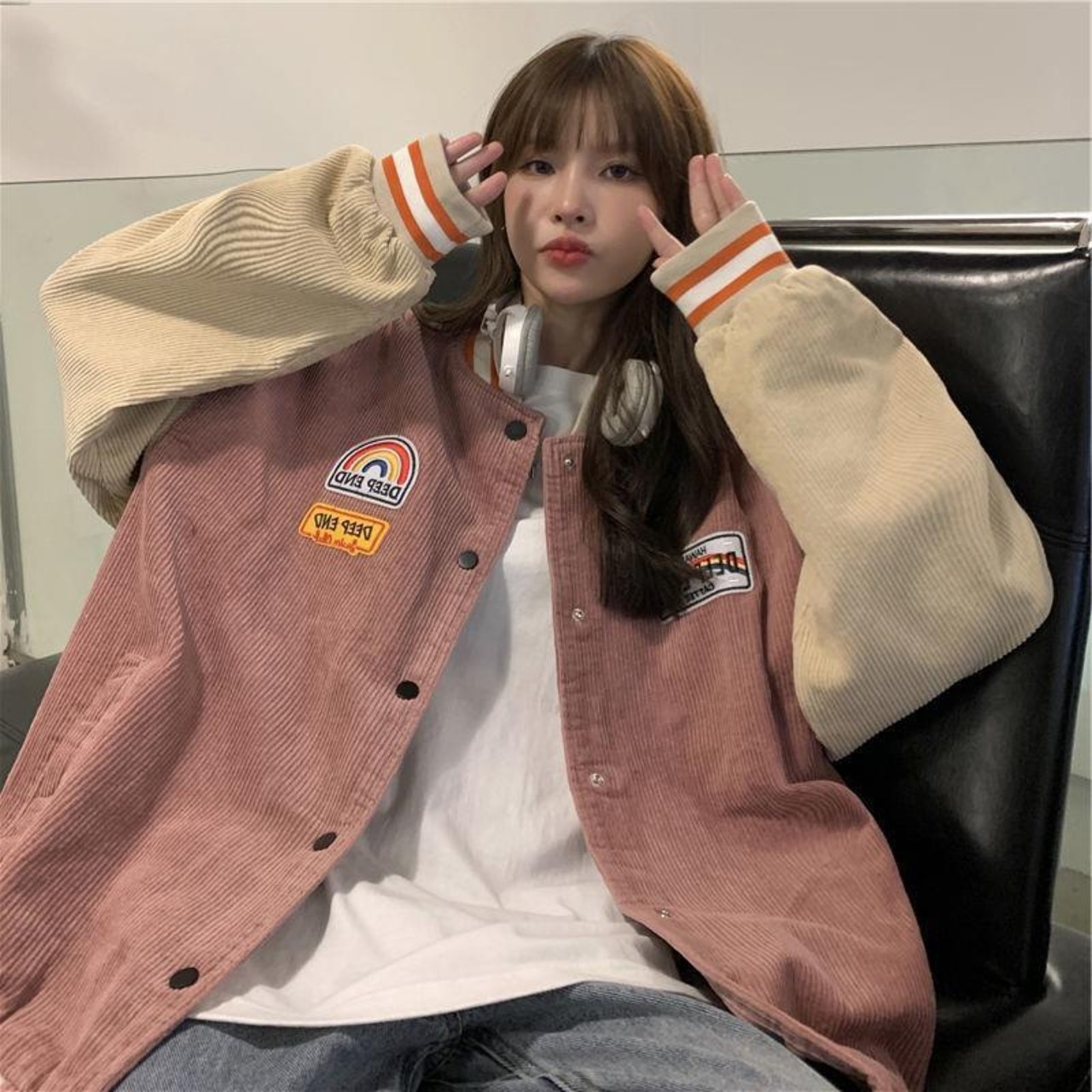 コーデュロイジャケット オータムカラー薄手ルーズレディース ロング 秋物 普寧17211341003
