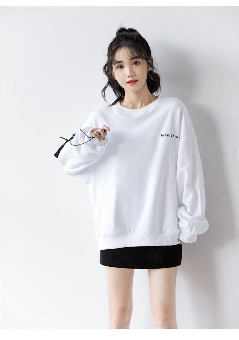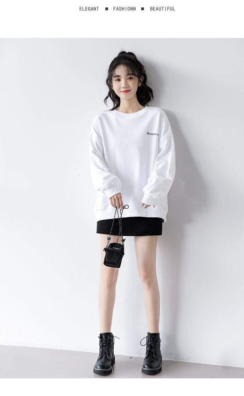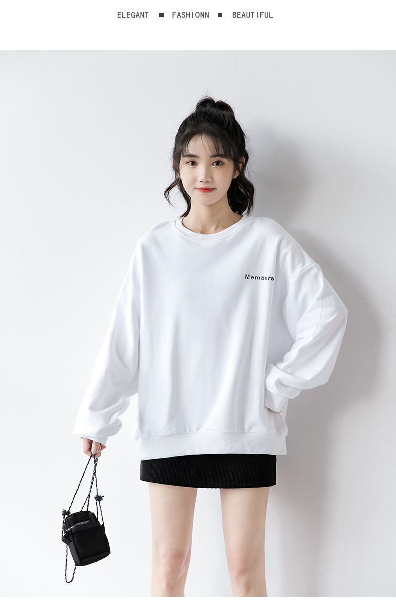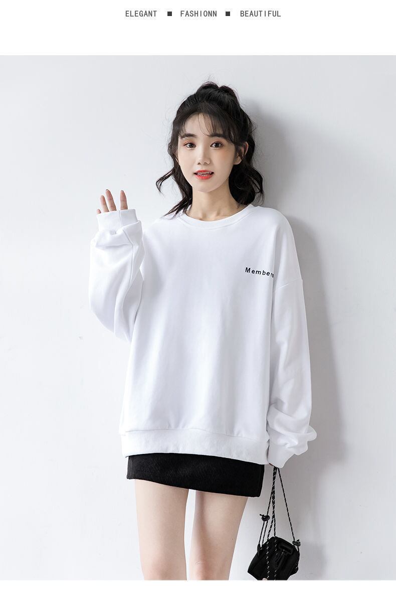 スプリングオータムホワイトセーター 薄手ルーズシャツ ロング 大きめサイズ 春物 秋物 普寧5818120046