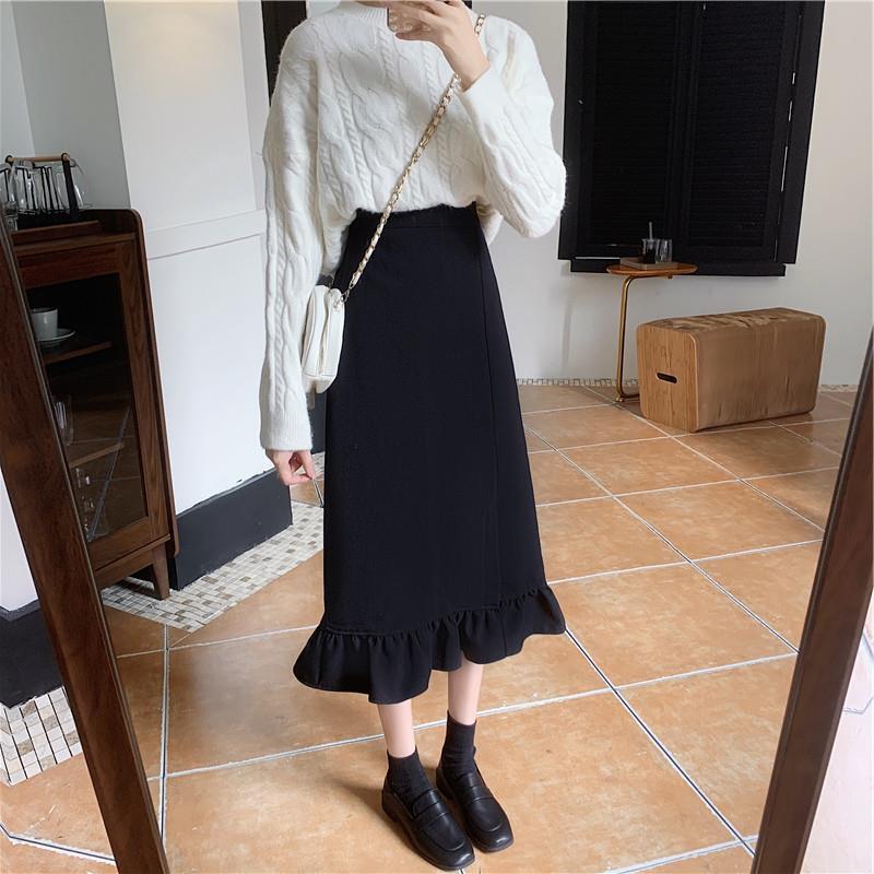 ウェストスリムブラックスカート オータムウィンター 秋物 冬物 普寧11873992244