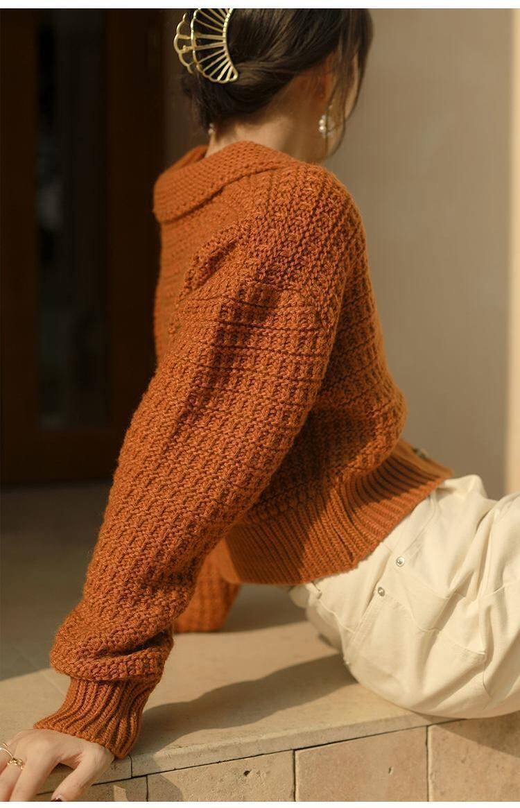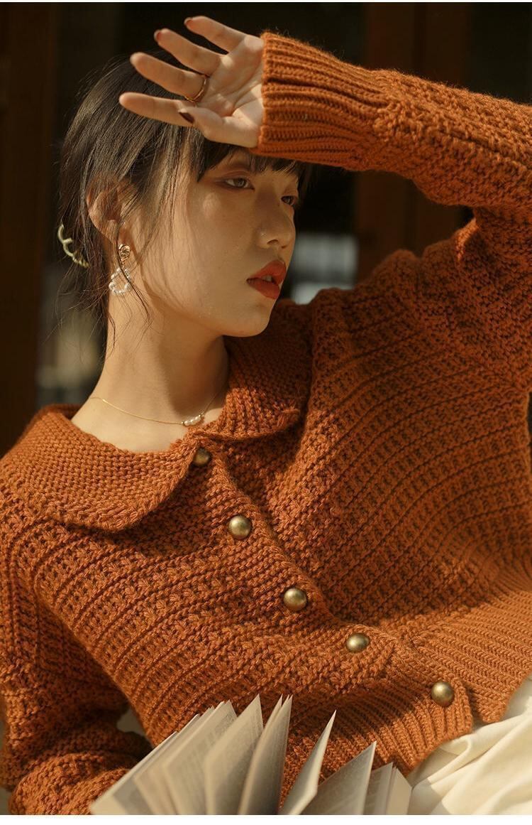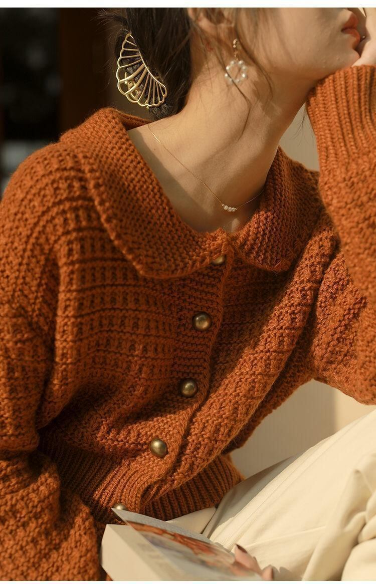 スタンダードニットセーター カーディガンスタイルカラールーズブラウス ジャケット レトロ ウィンター 冬物 普寧3350448301