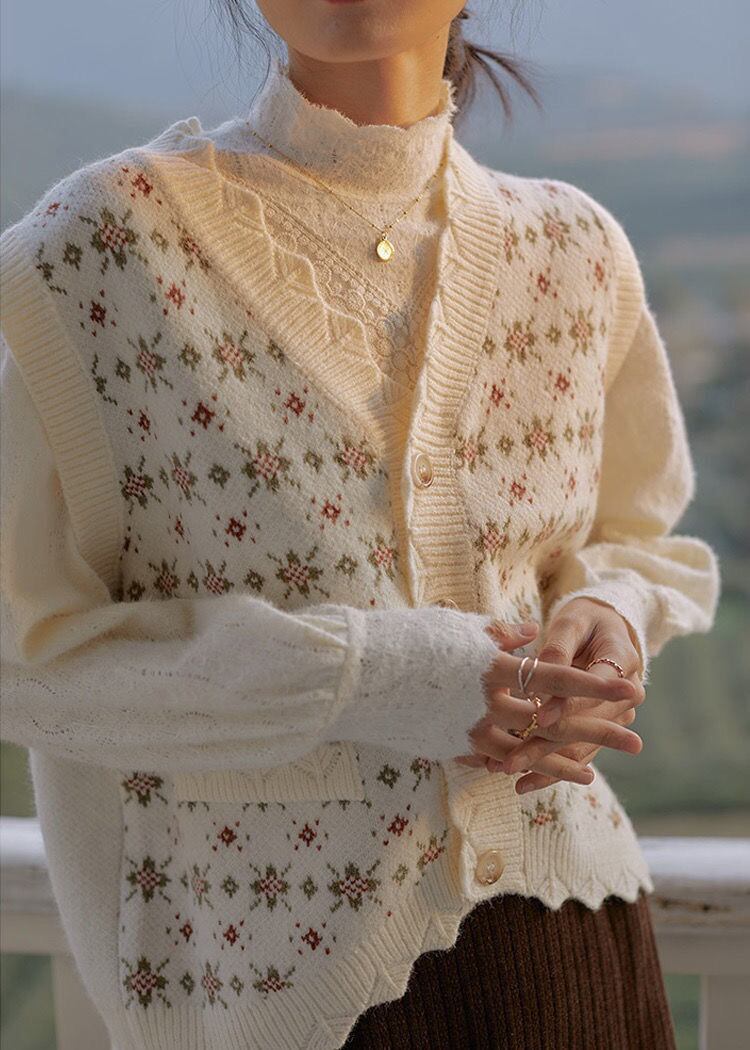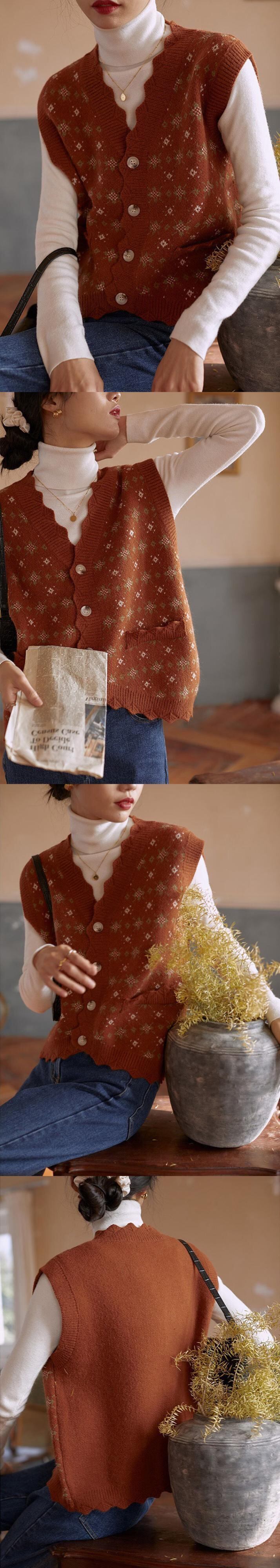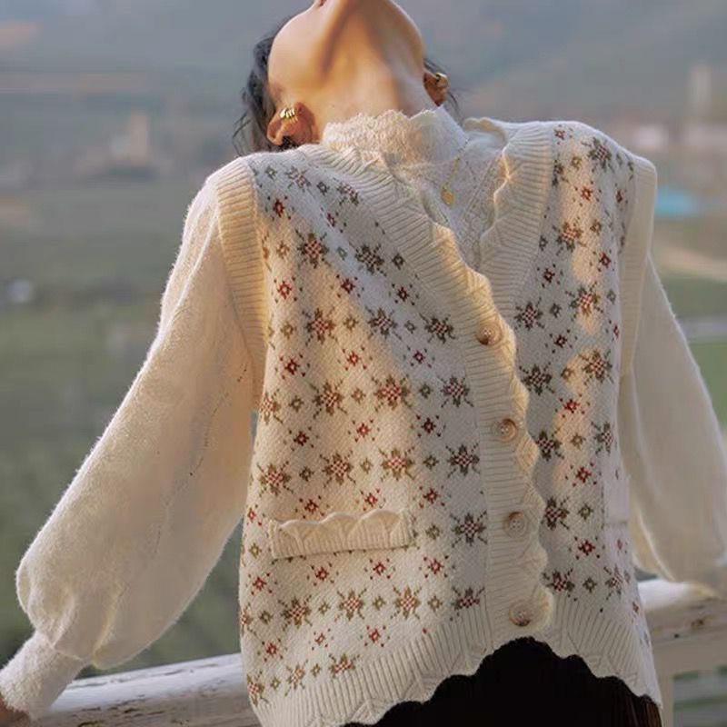 スタンダードVネックセーター カーディガンジャケット レディースルーズスプリングニット レトロ 春物 普寧24920684935