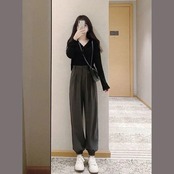 オータムスタイルスタンダードニットカーディガンハイウェストウェストレギンス カジュアルパンツ レトロ ストリート 秋物 普寧29460789615