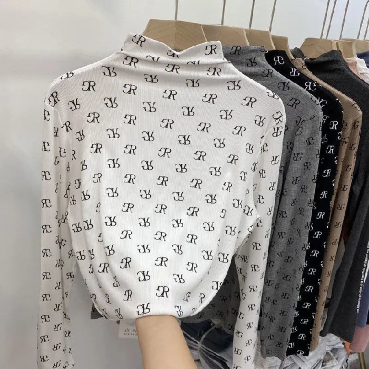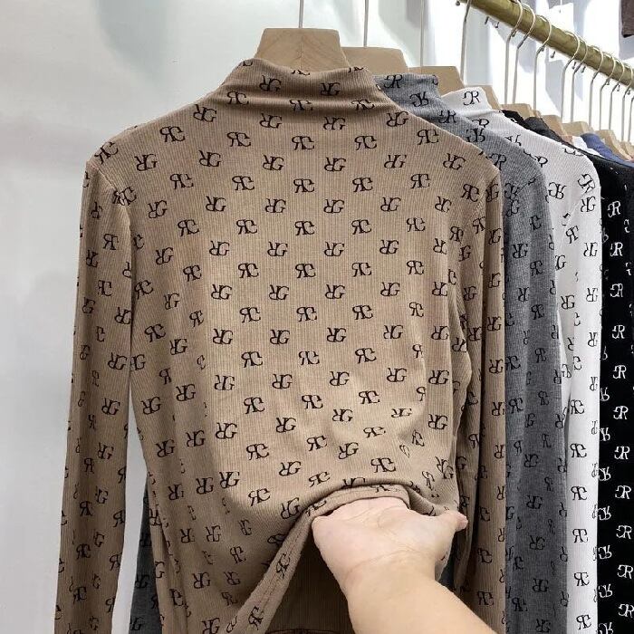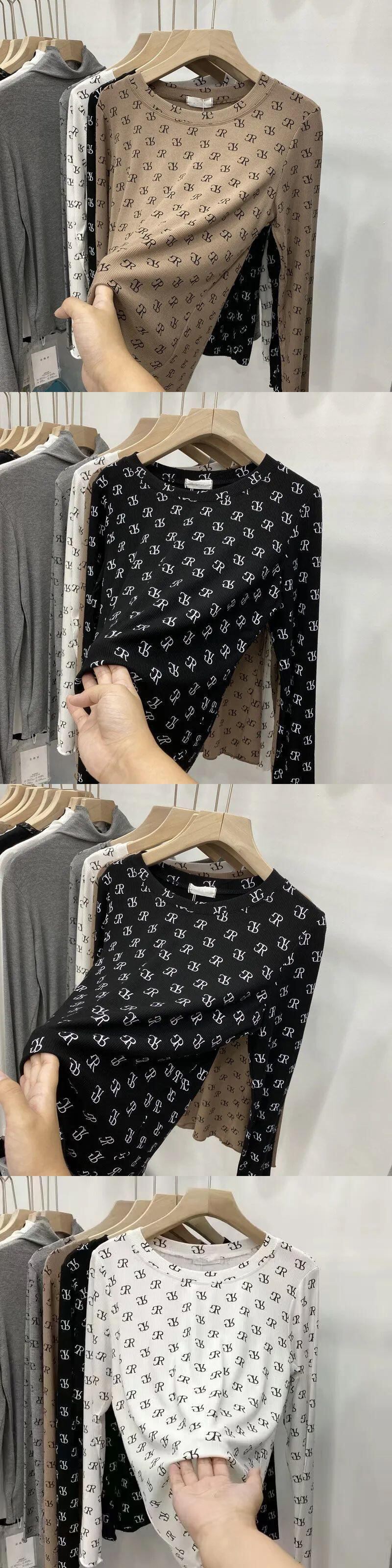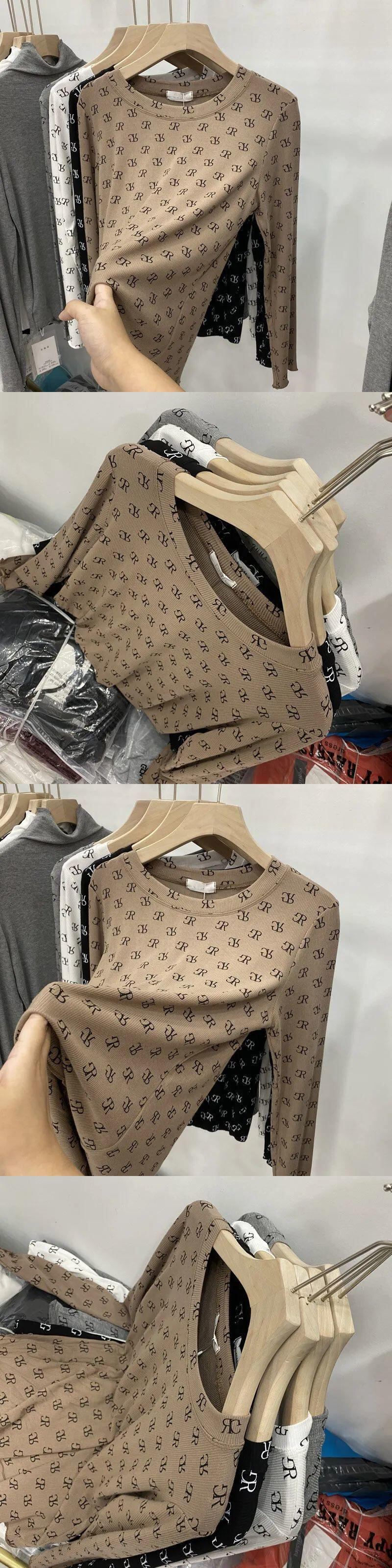 オータムレッドプリントスタイル薄手カジュアルラウンドネックTシャツ ロング 秋物 Oネック 普寧94056207002