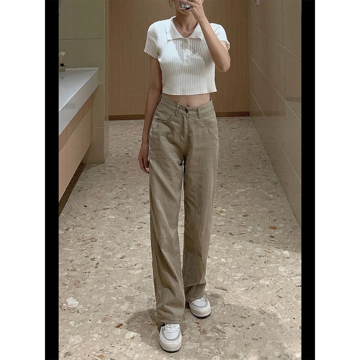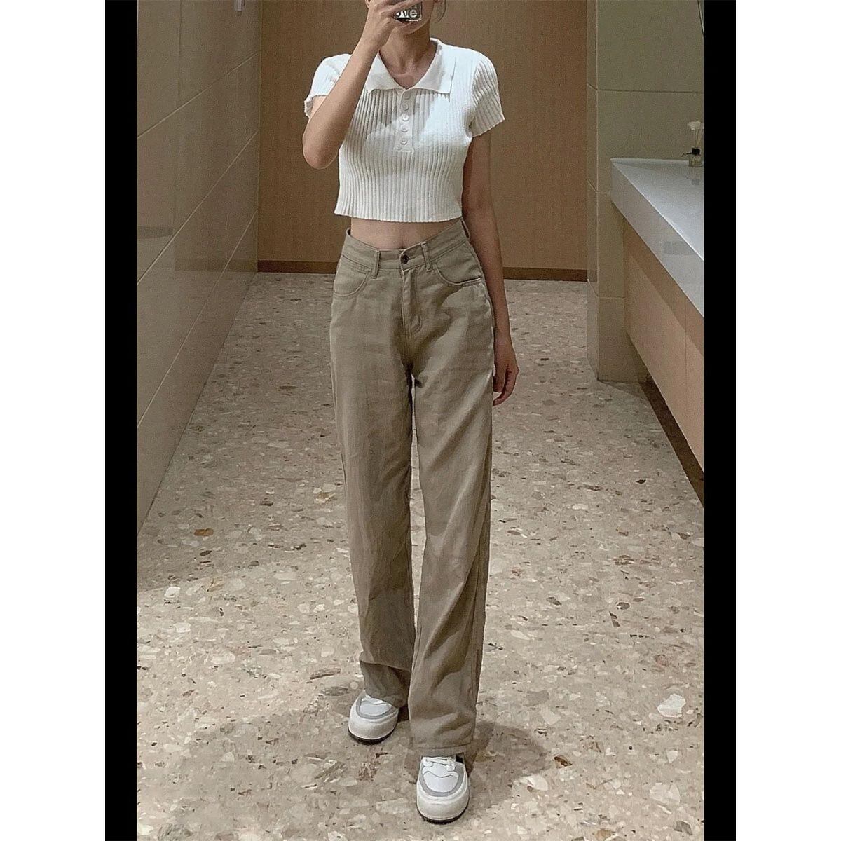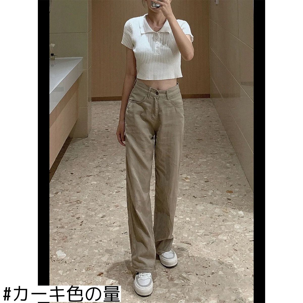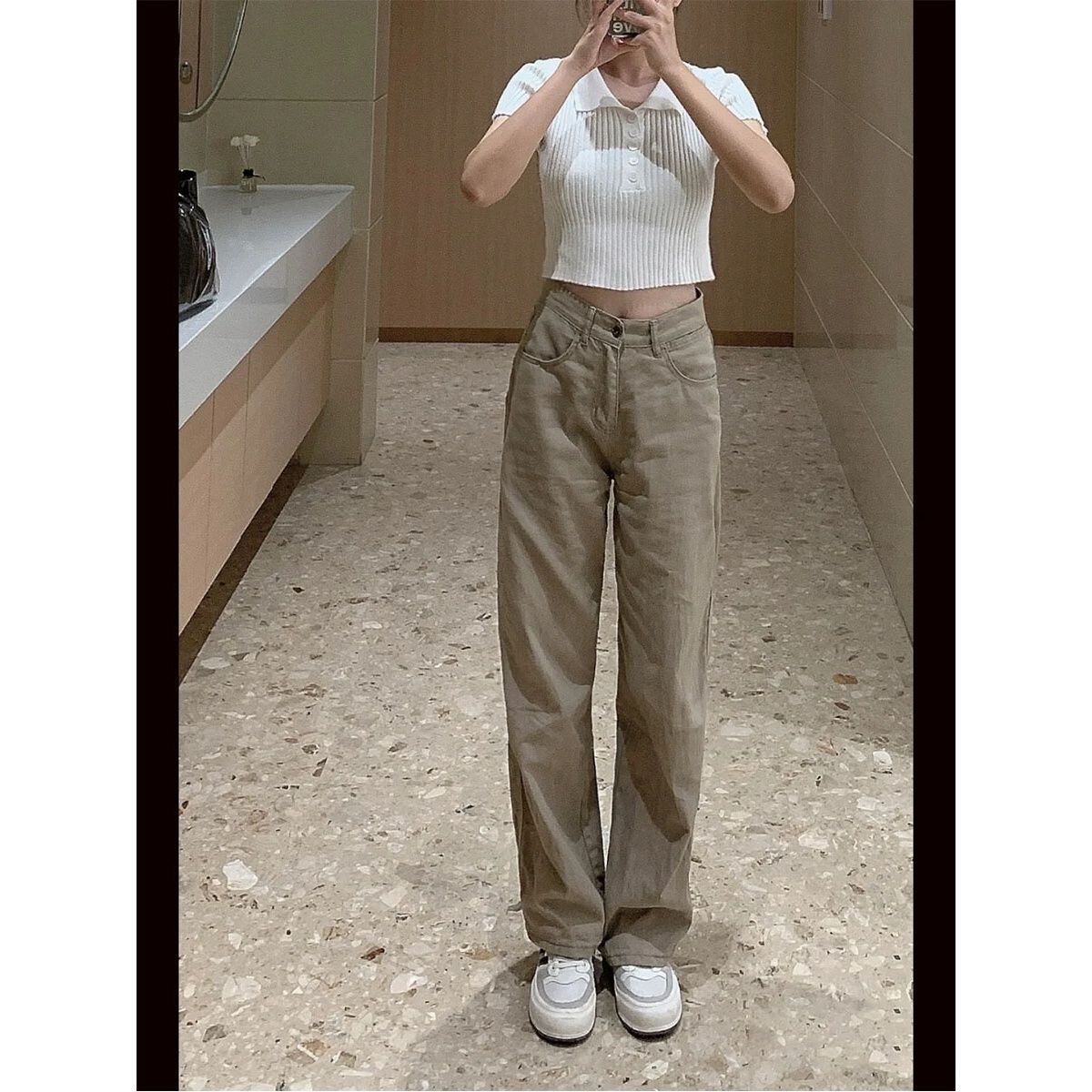 カーキジーンズ オータムルーズハイウェストウェスト薄手パンツ 秋物 普寧97863874608
