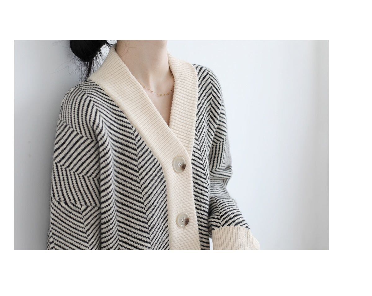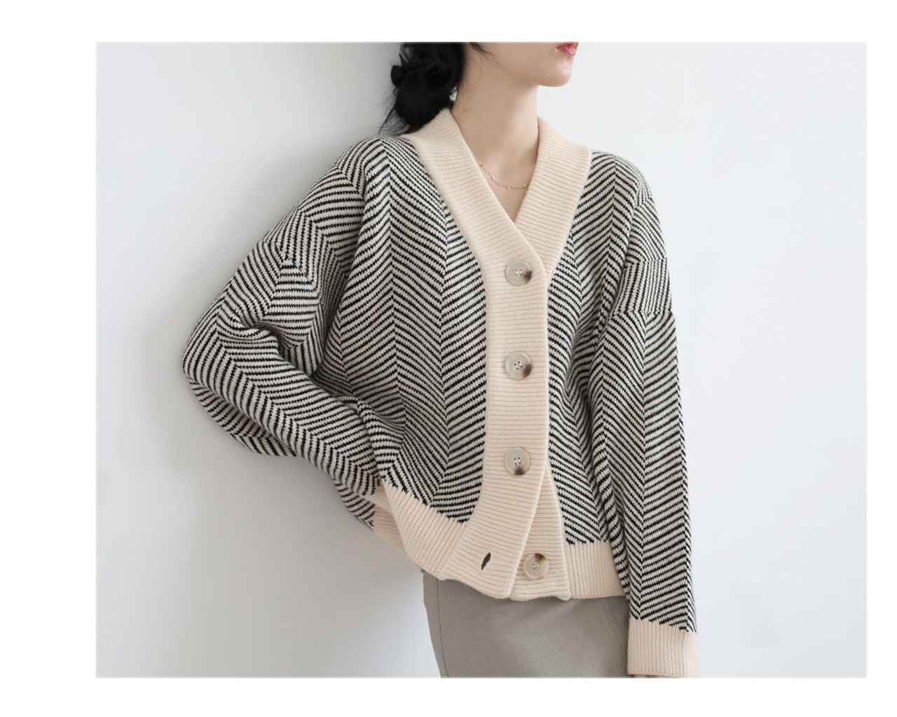 オータムスタイルルーズストライプセーター ニットコート レディース 秋物 普寧65006158809