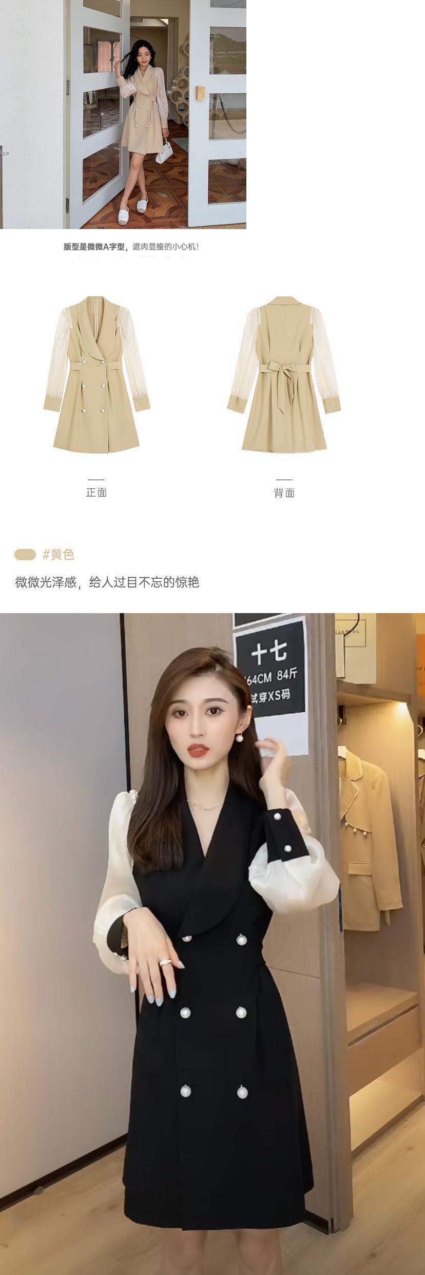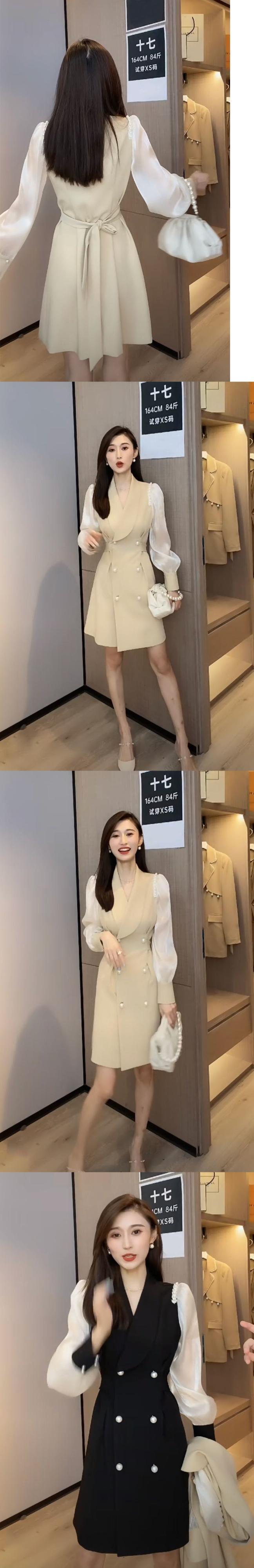 レッドスカート オータムドレス スリムウェストシフォンスリーブ 秋物 ステッチ 普寧51920336637