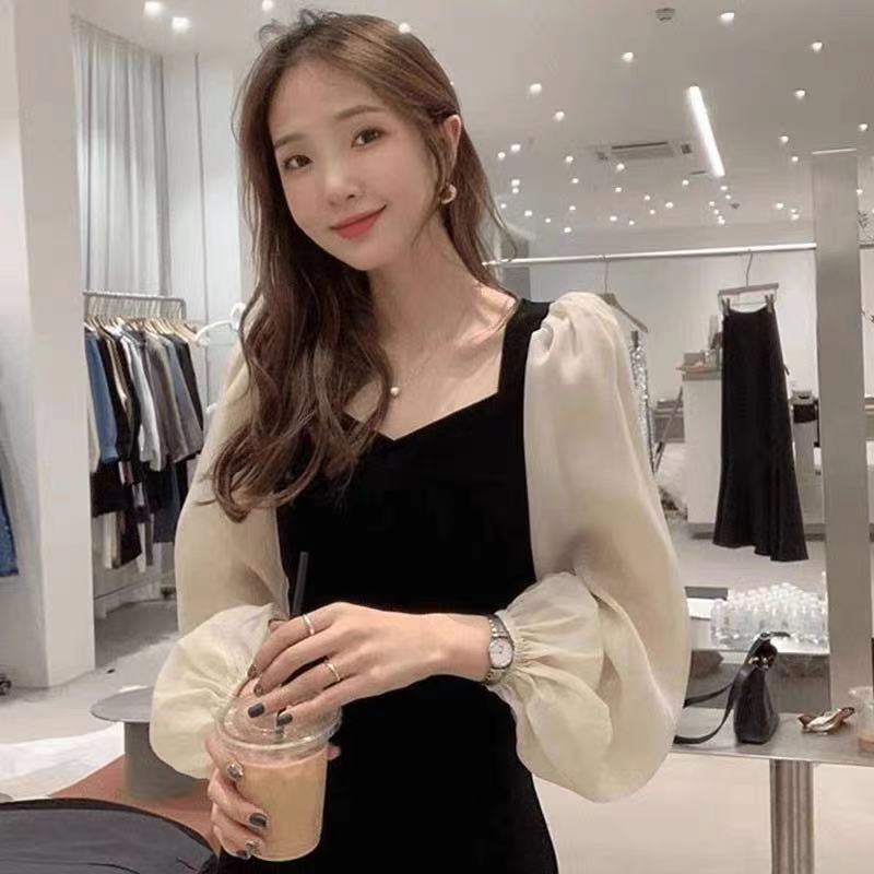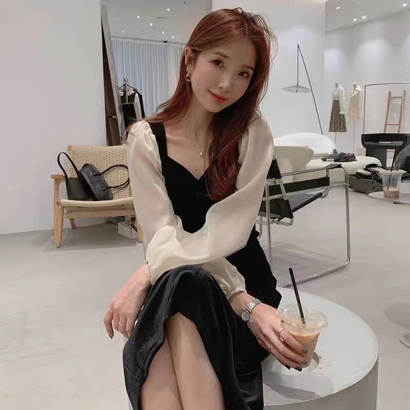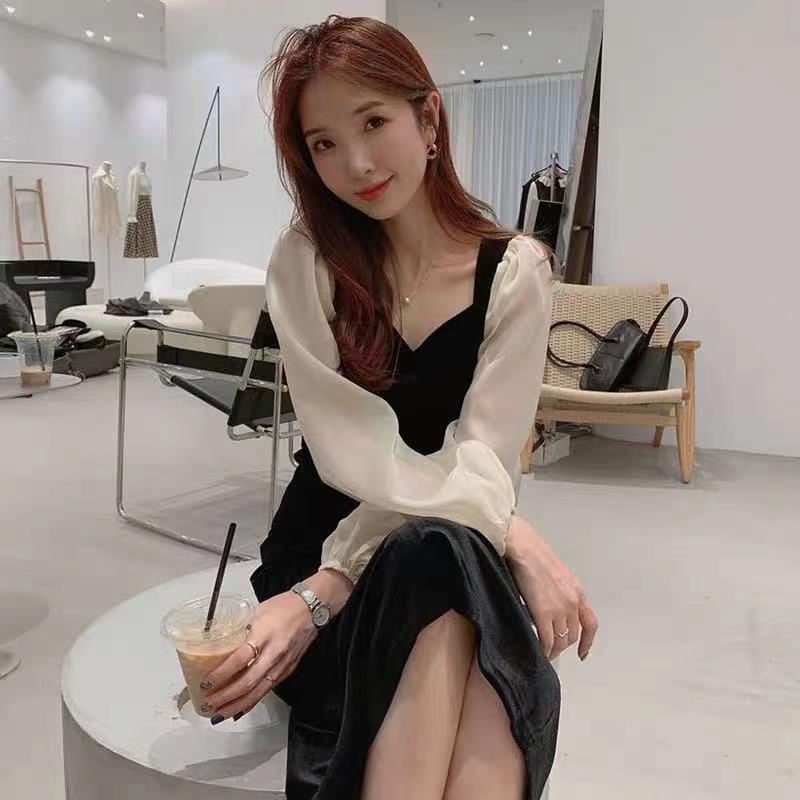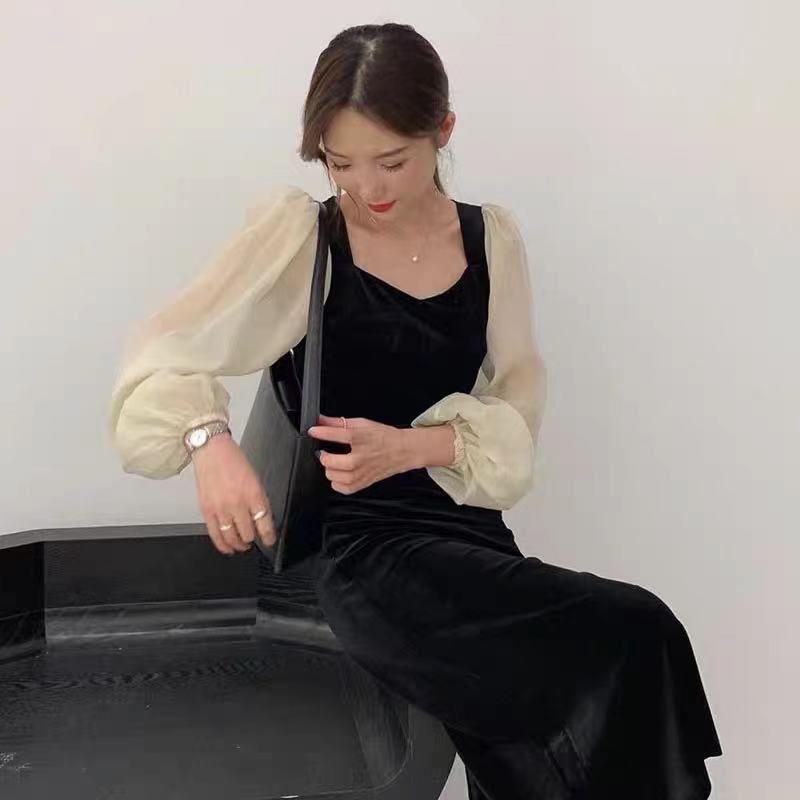 オータムウィンターゴールドベルベットドレス ストリート 秋物 冬物 スクウェア ステッチ 普寧9391534443